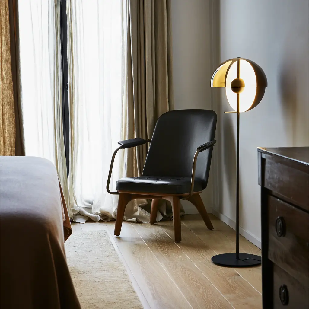 Illuminate your space with the versatile and artistic Theia P Dimmable LED Floor Lamp from Marset. Inspired by the Greek goddess of sight, this lamp embodies her character through its two half-spherical faces. Effortlessly switch between direct, indirect, ambient, and task lighting with the swivel function, adjusting an energy-efficient LED source. Perfect for any room in your home, this lamp creates a bright and stylish atmosphere. Highlights