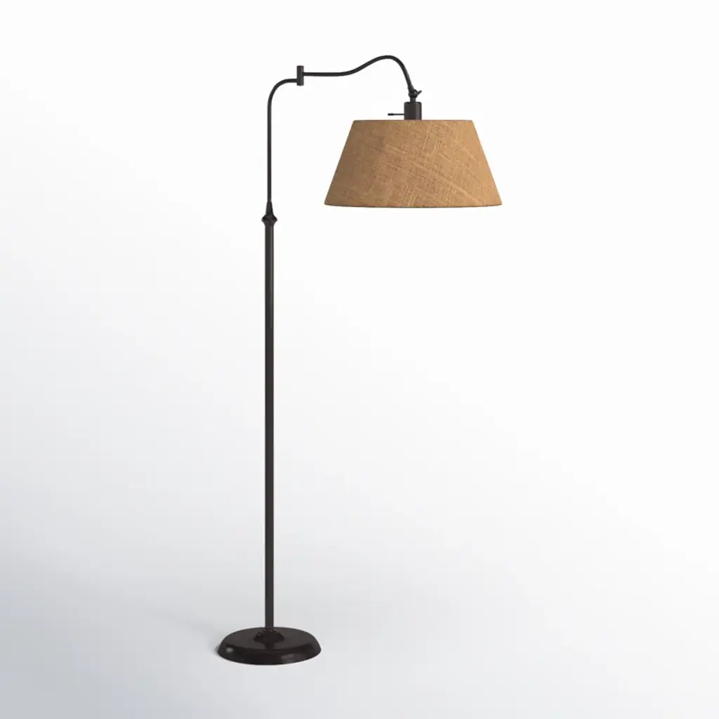 Swing-arm lamps have made their way into our hearts and homes with their distinctive style and convenient versatility. This is a great partner to your nightstand, desk, or sectional – really any place where you want the ability to direct the light for reading or tasking. It's made from stainless steel and comes in an array of finishes. The single bulb (sold separately) is surrounded by a burlap empire shade.