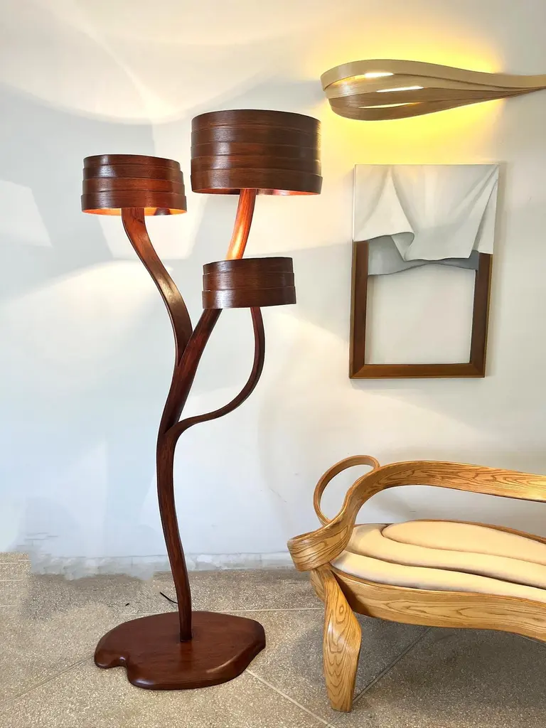 Three Tear Floor Lamp No 3 - Bend Wood Floor Lamp