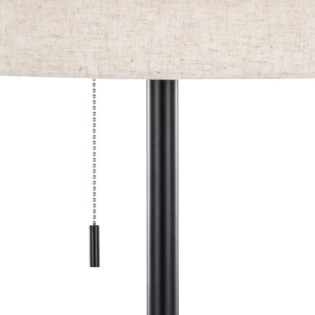 Tier 64" Contemporary Metal Floor Lamp In Black Metal With Beige Linen Shade By Lumisource