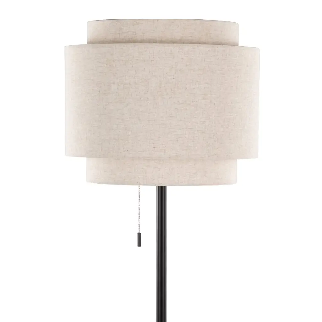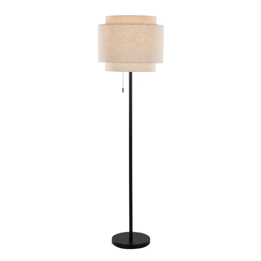 Illuminate your home with the Tier Floor Lamp by LumiSource. Featuring a sleek metal frame with a tiered linen shade and pull-chain switch, this lamp will add style and warmth to space. Place in you living room, office, or bedroom for some minimalist flair. Available in various colors, choose the one that fits your space best!Contemporary stylingBlack metal frameBeige linen shade
