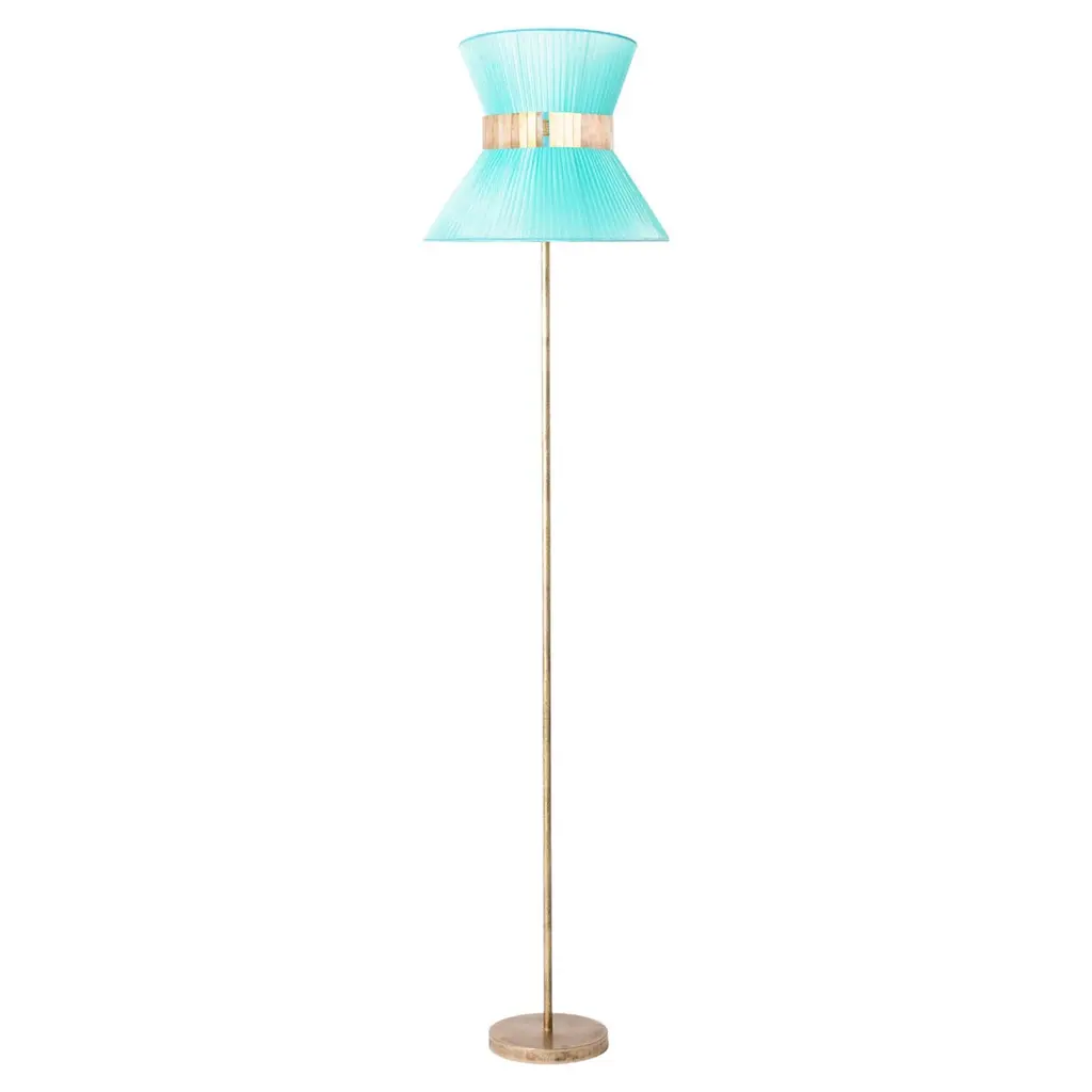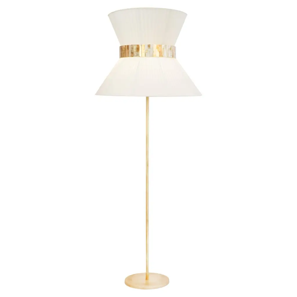 TIFFANY the iconic lamp!For 20 years, we have been committed to offering you unique collections in terms of design and quality. Using an ancestral manufacturing silvering method, all our iconic products are handmade in our atelier in Tuscany, Italy.At the House of Sabrina Landini, we believe in once-in-a-lifetime Tiffany.Celebrate your extraordinary love story with the one that captures your dream come true Elegant lampshades adorned with precious silks and velvet trims, the perfect match, available in a wide variety of colors and sizes.A smooth antiqued brass stem fits to perfection with the silver glass belt, a shiny eye-catching, the special silver plating treatment, masterfully performed over the years by Sabrina, confers uniqueness to the entire object, as the hallmark of the entire collection.CE certified and Electrified : US, EU, UK, dimmableAvailable in the lampshade diameter : 23, 30, 40, 60, 80 cm