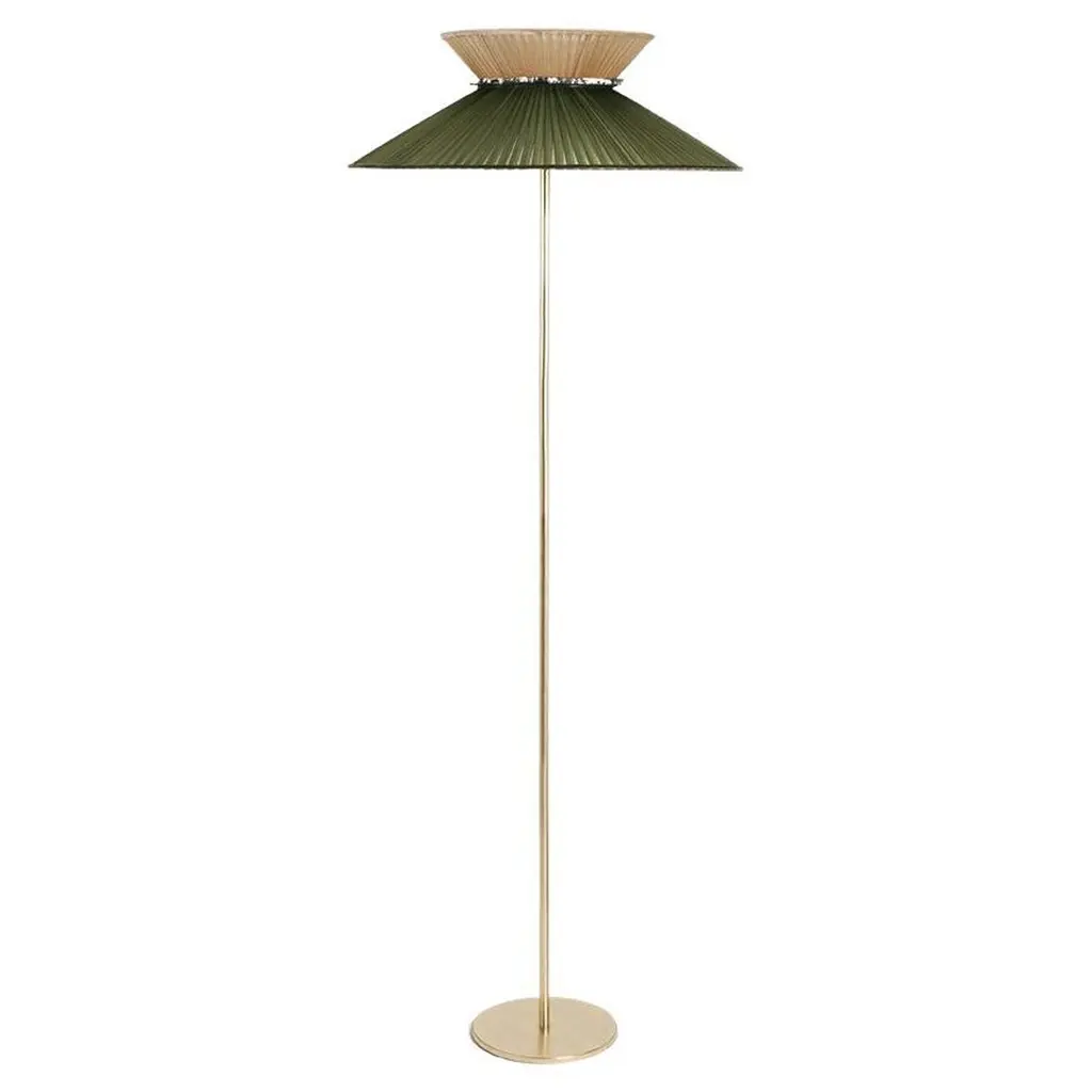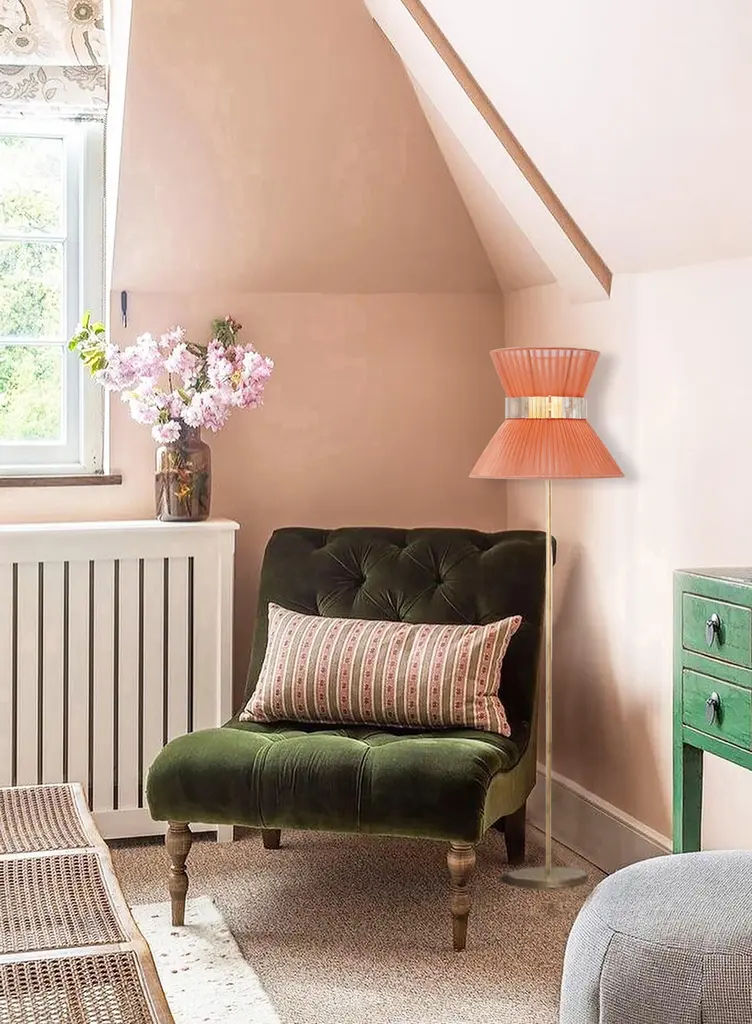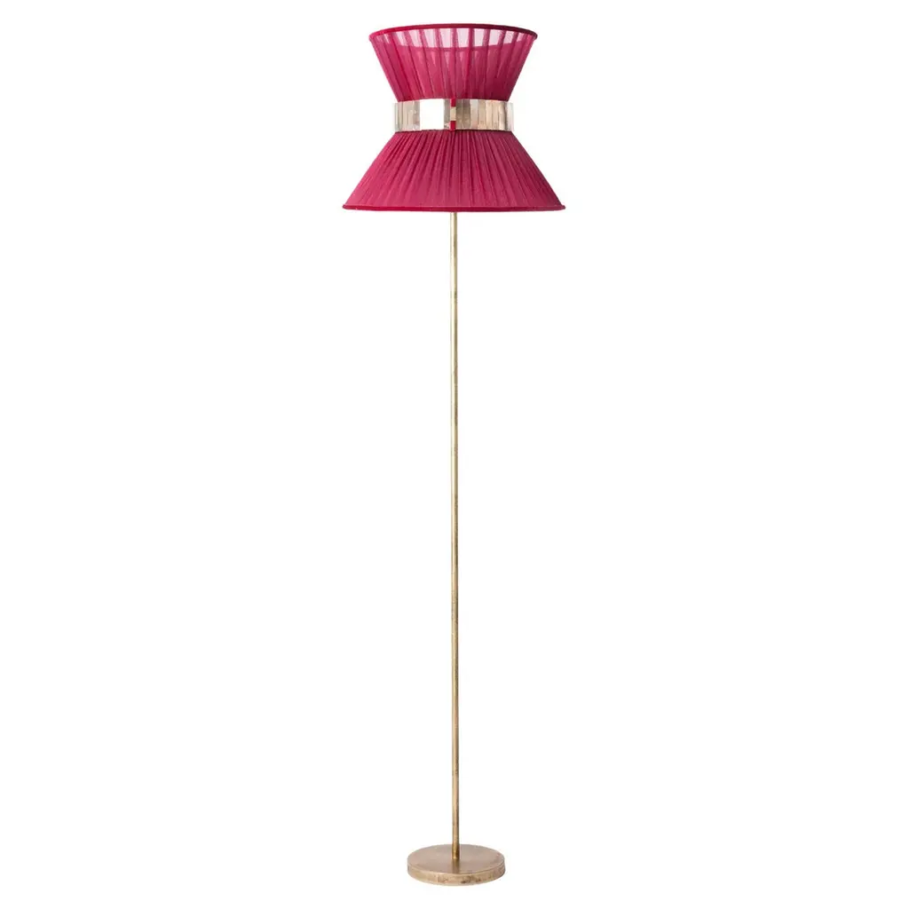 "Tiffany" Floor Lamp 30 Koral Silk, Antiqued Silvered Glass, Brass