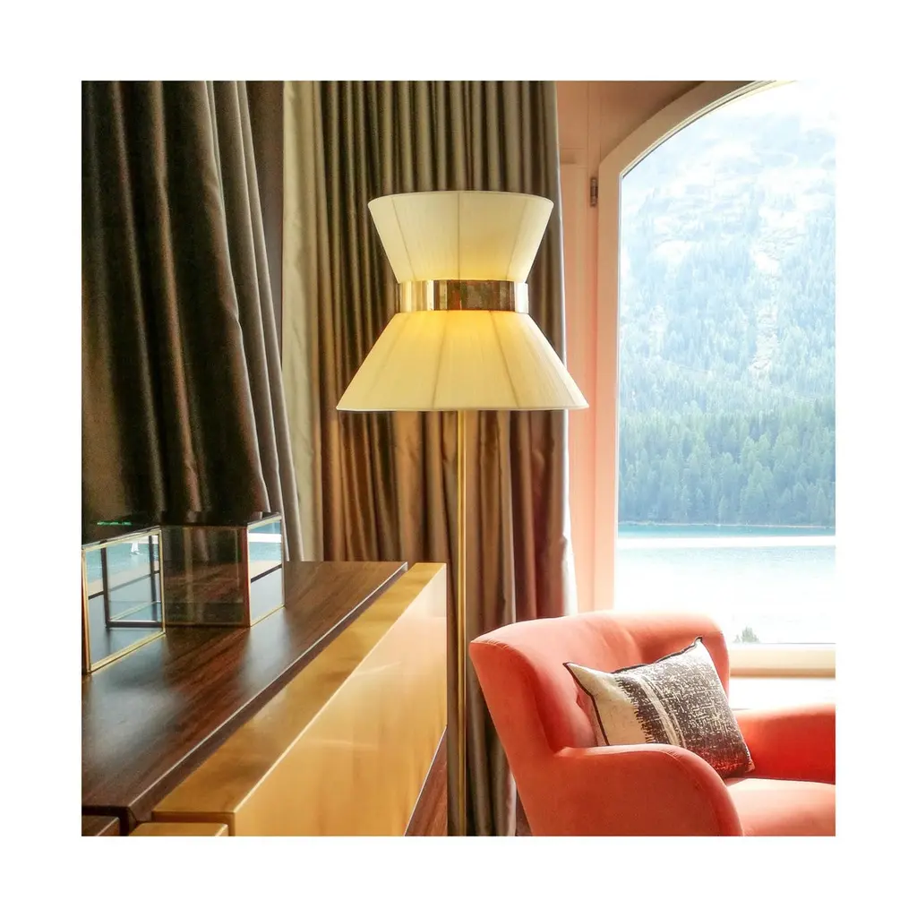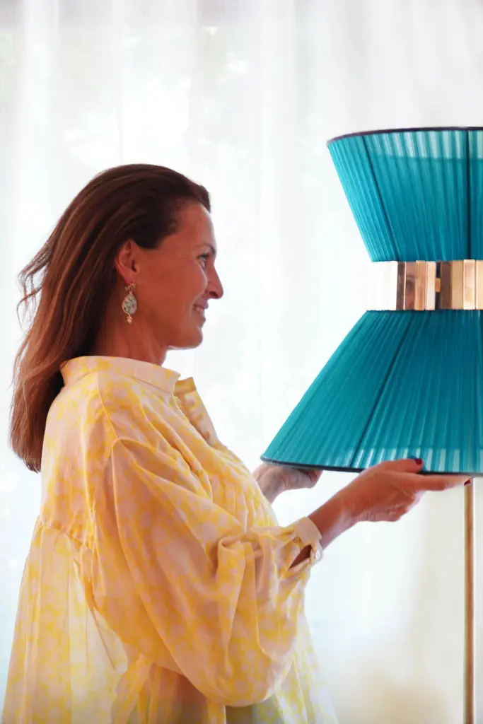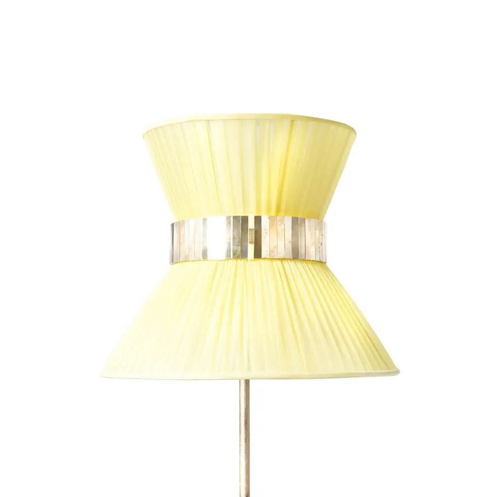 TIFFANY the iconic lamp!For 20 years, we have been committed to offering you unique collections in terms of design and quality. Using an ancestral manufacturing silvering method, all our iconic products are handmade in our atelier in Tuscany, Italy.At the House of Sabrina Landini, we believe in once-in-a-lifetime Tiffany.Celebrate your extraordinary love story with the one that captures your dream come true Elegant lampshades adorned with precious silks and velvet trims, the perfect match, available in a wide variety of colors and sizes.A smooth antiqued brass stem fits to perfection with the silver glass belt, a shiny eye-catching, the special silver plating treatment, masterfully performed over the years by Sabrina, confers uniqueness to the entire object, as the hallmark of the entire collection.CE certified and Electrified : US, EU, UK, dimmableAvailable in the lampshade diameter : 23, 30, 40, 60, 80 cm