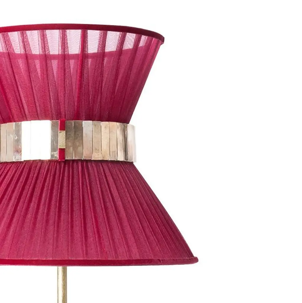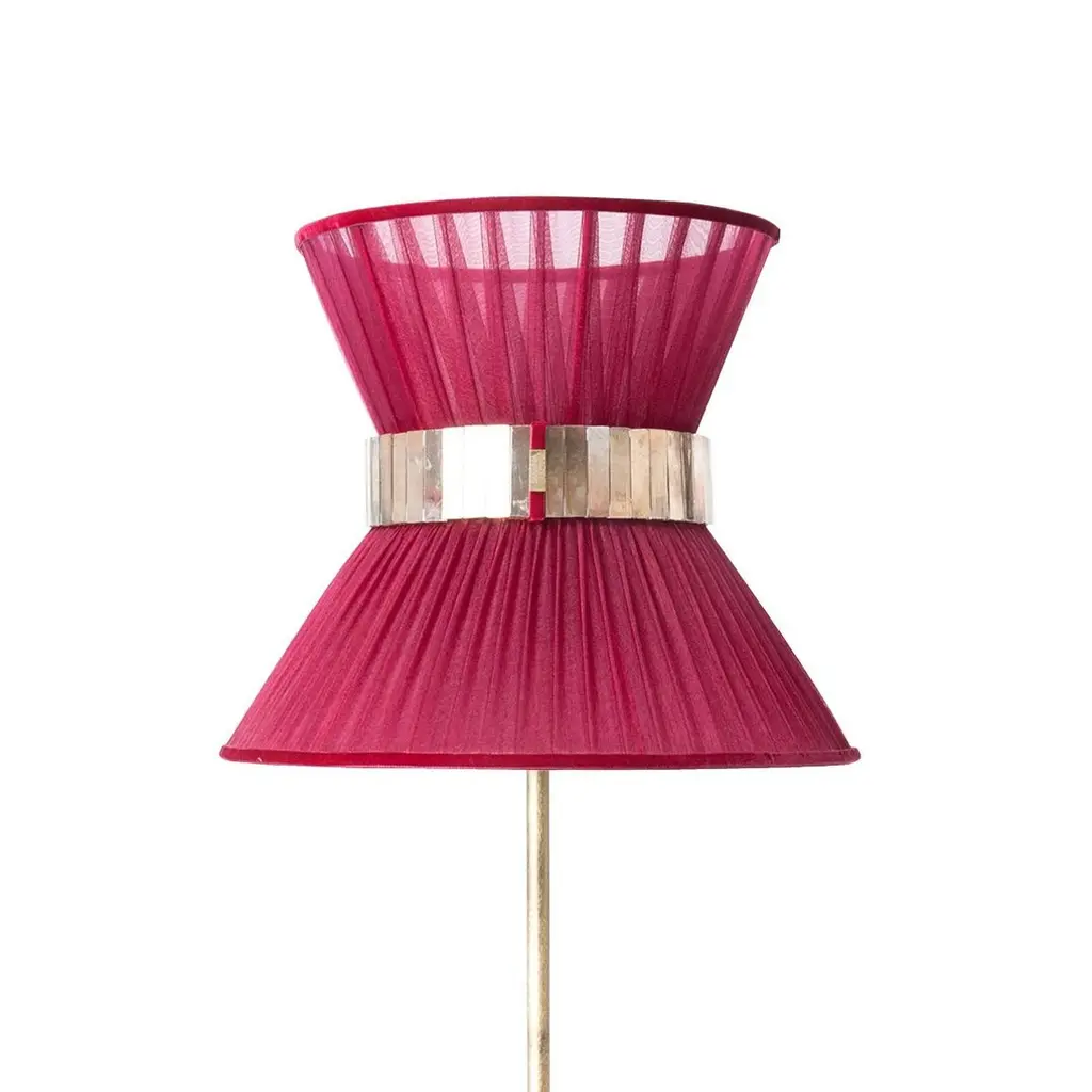 "Tiffany" Floor Lamp 40 Ruby Silk, Antiqued Silvered Glass, Brass