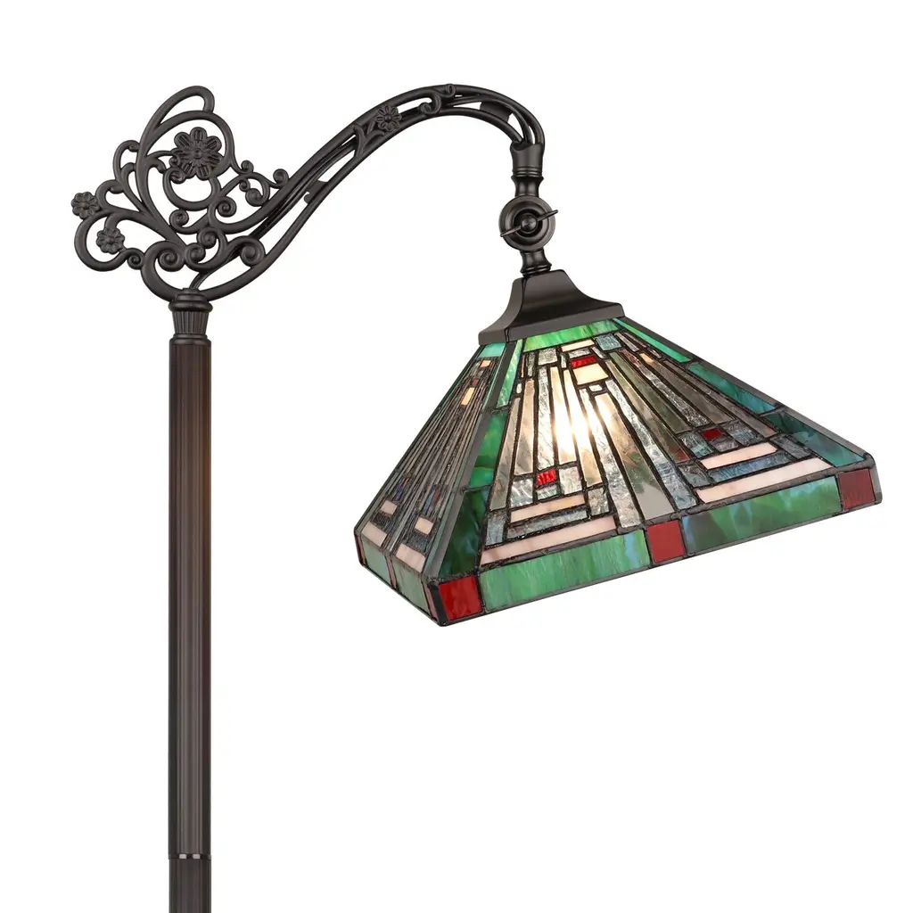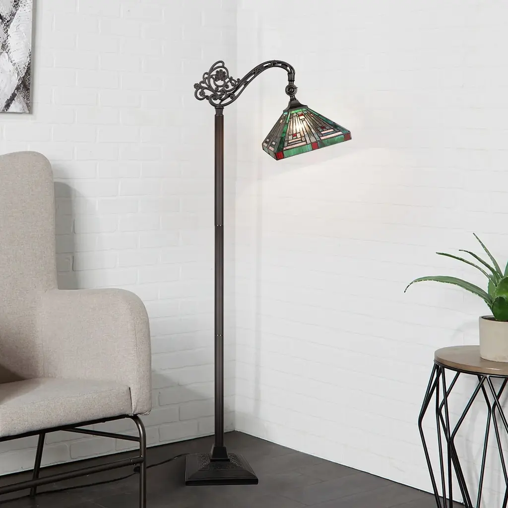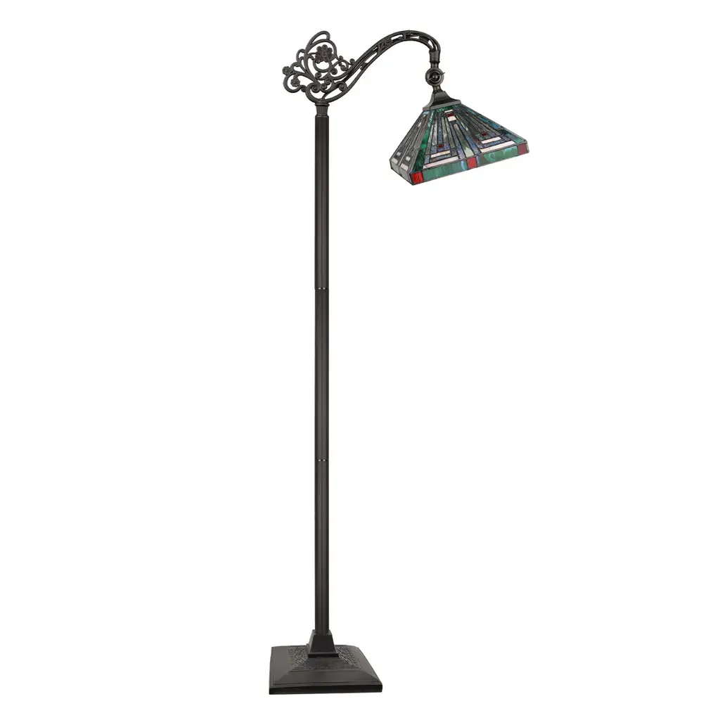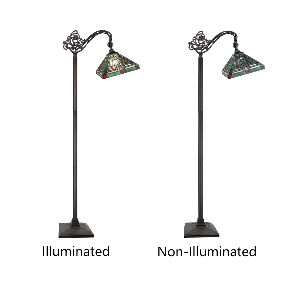 Tiffany-Style 1-Light Mission Reading Floor Lamp 11" Shade. - 11" - Green