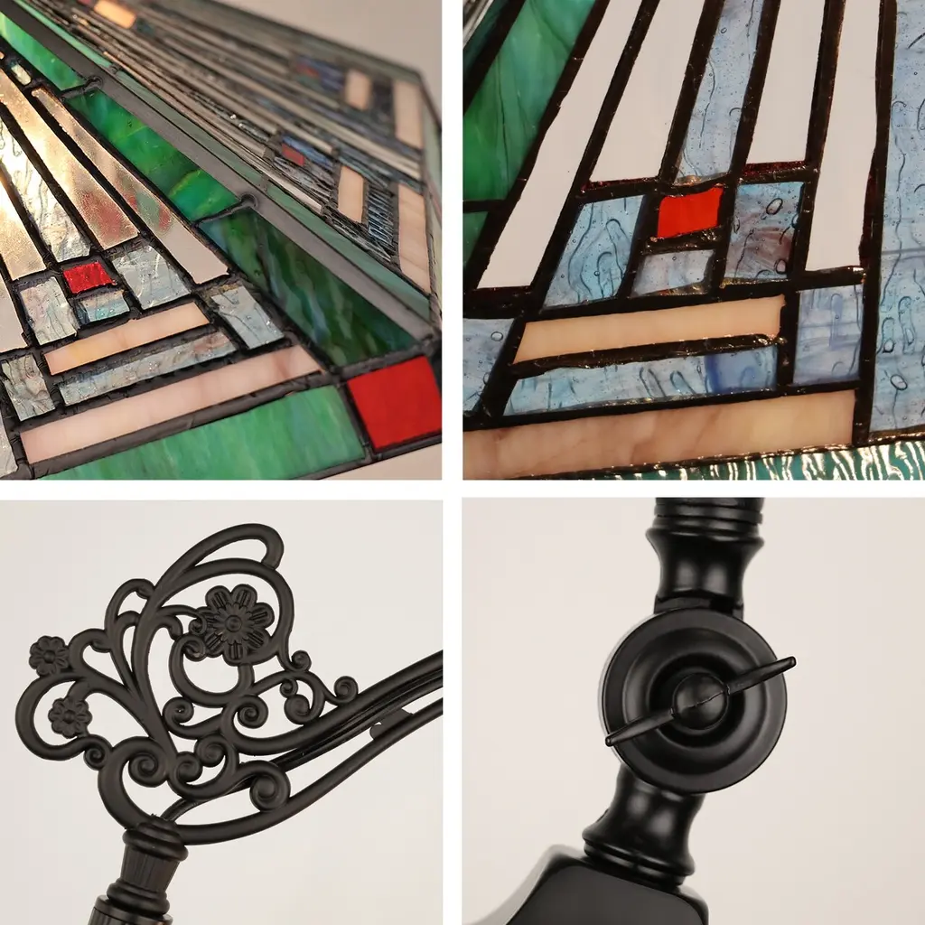 This is a stunning 1 light reading floor lamp, featuring a beautiful mission shade. This piece would be perfect in a living room or in a den. Each shade is hand-crafted, using the same methods developed by Louis Comfort Tiffany in the early 1900's. This process entails using 236 hand cut stained art glass pieces, each wrapped in fine copper foil and soldered together at extremely high temperatures to form each unique piece. Exact size to the nearest inch may vary, and exact color of each glass piece may vary due to each piece being hand crafted. First image is with the light shining through, second image is with no light. Dry listed and recommended for an indoor setting. Features: Since these are hand crafted products, the exact color of glass pieces may vary. Colors of the glass will appear darker and less vibrant when not illuminated. Handmade glass will vary from one piece to the other; glass made at different times will also vary. Light bulbs used in lamps or ambient lighting may affect the appearance of the products. Stained glass product has been protected with mineral oil as part of the finishing process. Please use a soft dry cloth to remove any excess oil.
