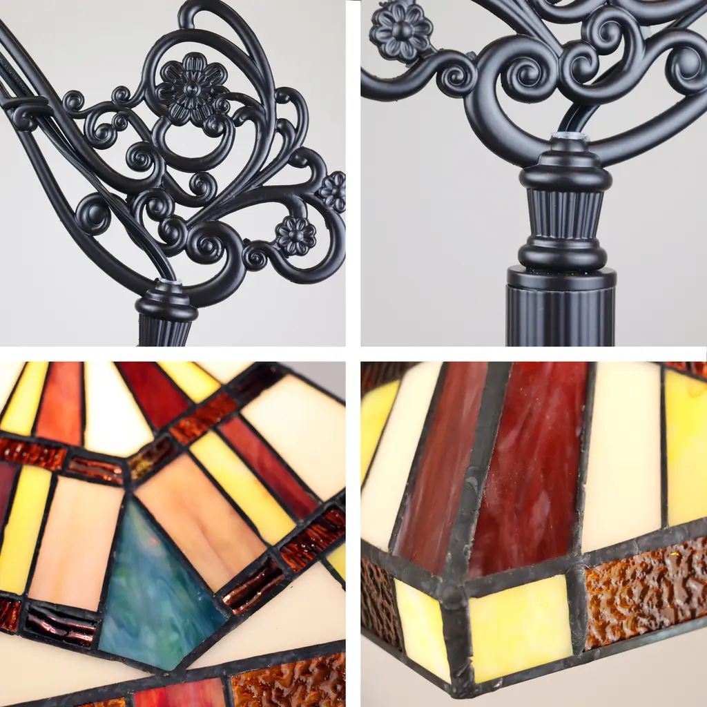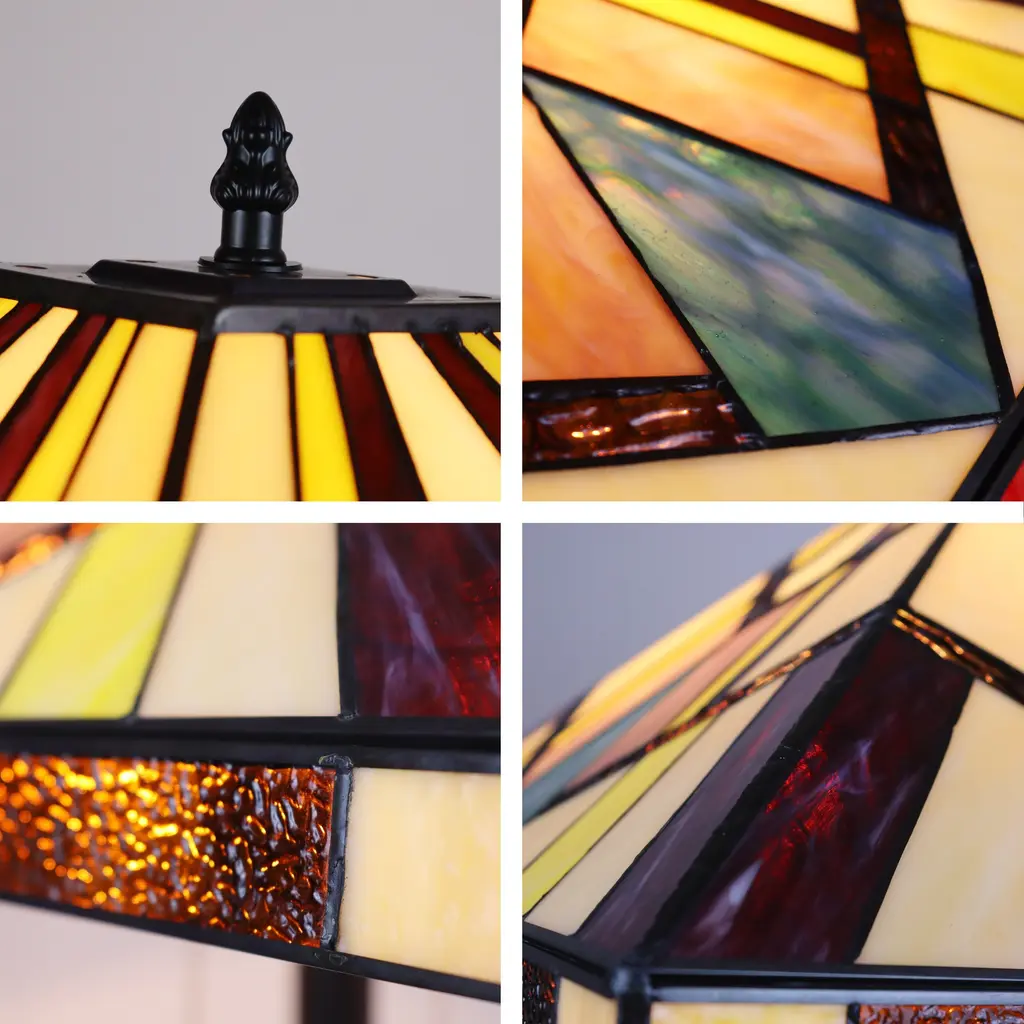 These Tiffany style, Mission design floor lamps feature a blackish bronze finish that will complement many decors throughout your home. Hand crafted from individually hand cut pieces of art glass that will add color and beauty to any room. Beautiful tones of Brown and Yellow Art Glass. Requires: 100 Watt Max E26 Type A bulbs (Not Included). Product Care: Wipe clean with a dry cloth. Available Fixture Dimensions: One (1) light: 63.9 inches high x 11.1 inches wide x 22.5 inches deep. Two (2) light: 65 inches high x 17.9 inch diameter. Since these are hand crafted products, the exact color of glass pieces may vary. Colors of the glass will appear darker and less vibrant when not illuminated. Handmade glass will vary from one piece to the other; glass made at different times will also vary. Light bulbs used in lamps or ambient lighting may affect the appearance of the products. Stained glass product has been protected with mineral oil as part of the finishing process. Please use a soft dry cloth to remove any excess oil.