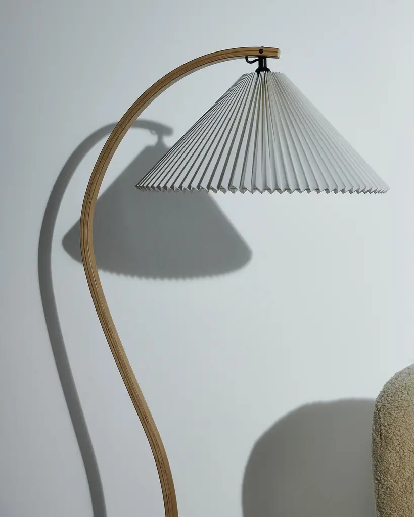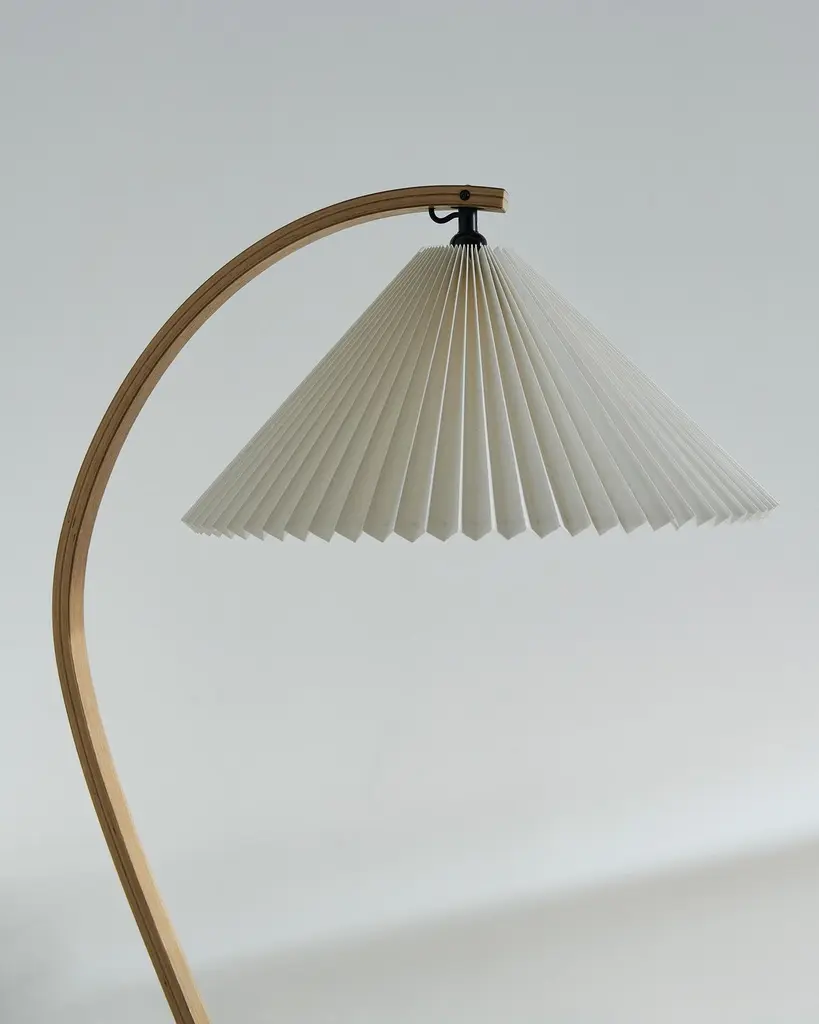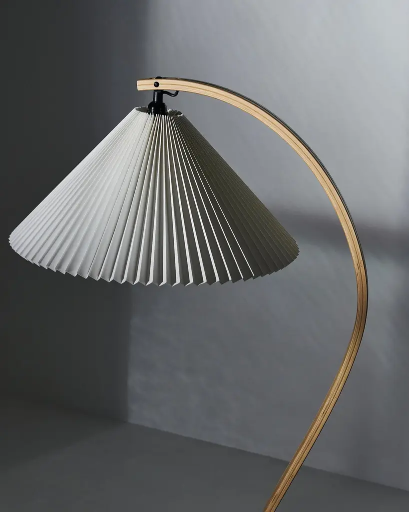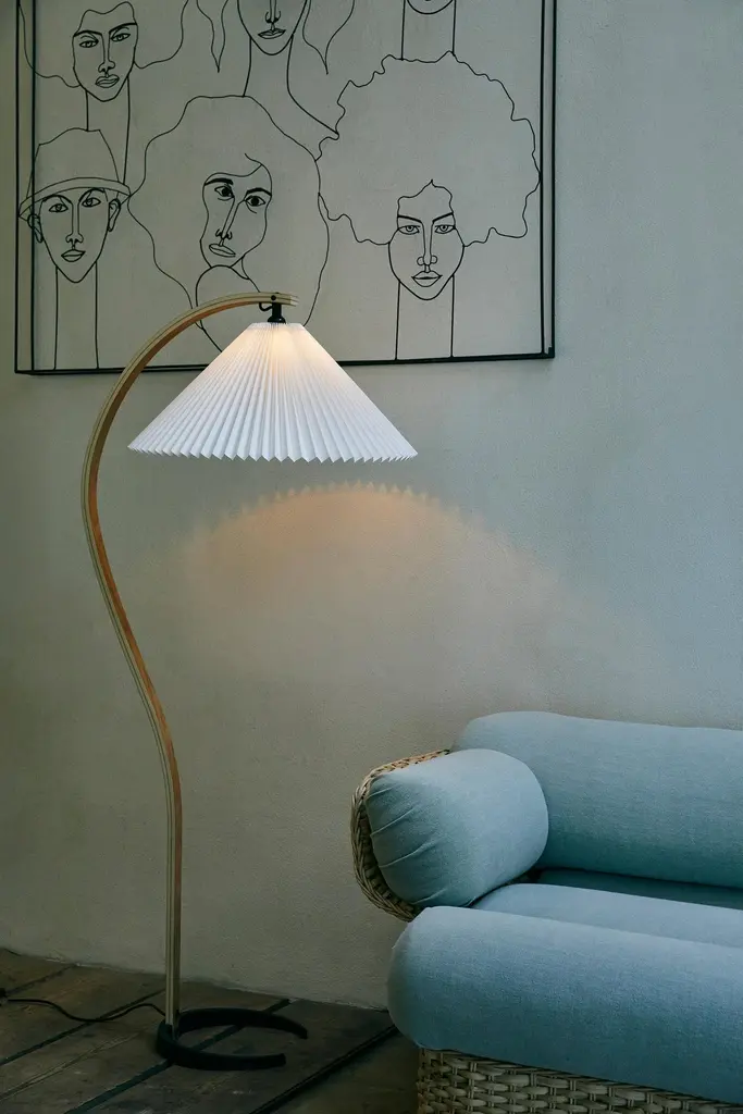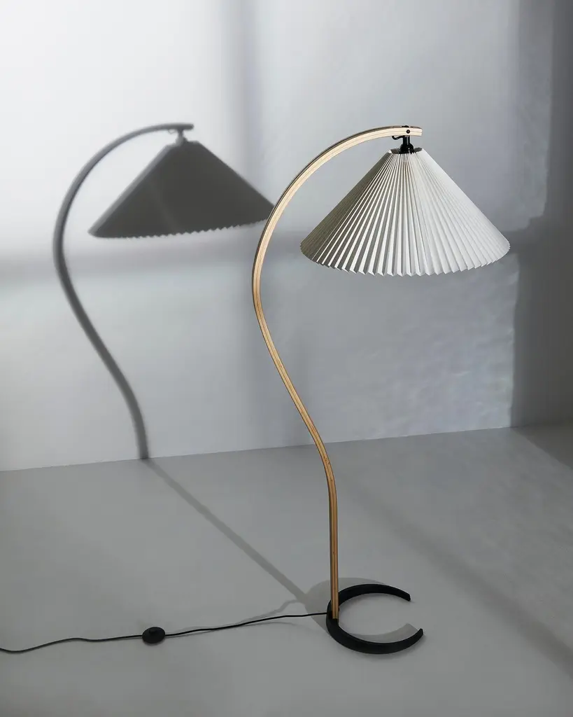 'Timberline' Floor Lamp for GUBIOriginally designed by Mads Caprani in the 1970s, this authorized GUBI re-edition is executed in oak, birch, canvas on a cast-iron base. Like the original, the new Timberline balances form and function to provide sculptural lighting to any space.Characterized by its elegant and airy white canvas lampshade, Caprani's design is inspired by tree lines in his native Denmark. The delicate curve of the stem and white canvas shade make the Timberline floor lamp idea for reading or ambient light.Price is per item. Accommodates a single E26 base 6-10W LED bulb (or incandescent equivalent). On/off switch on black cloth cord.In-stock lead time 2-3 weeks. Out-of-stock may take up to 8 weeks or more. For time-sensitive orders, kindly inquire prior to purchasing.Made to order. All sales are final.