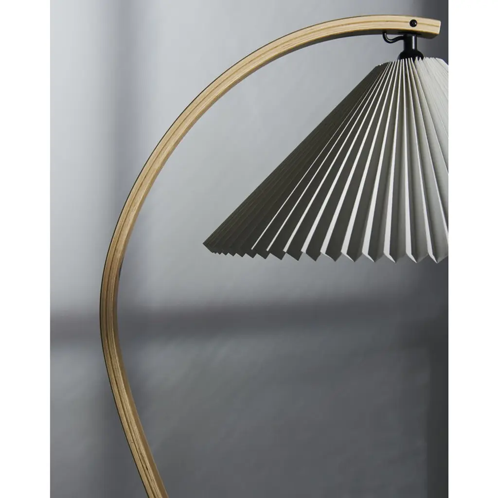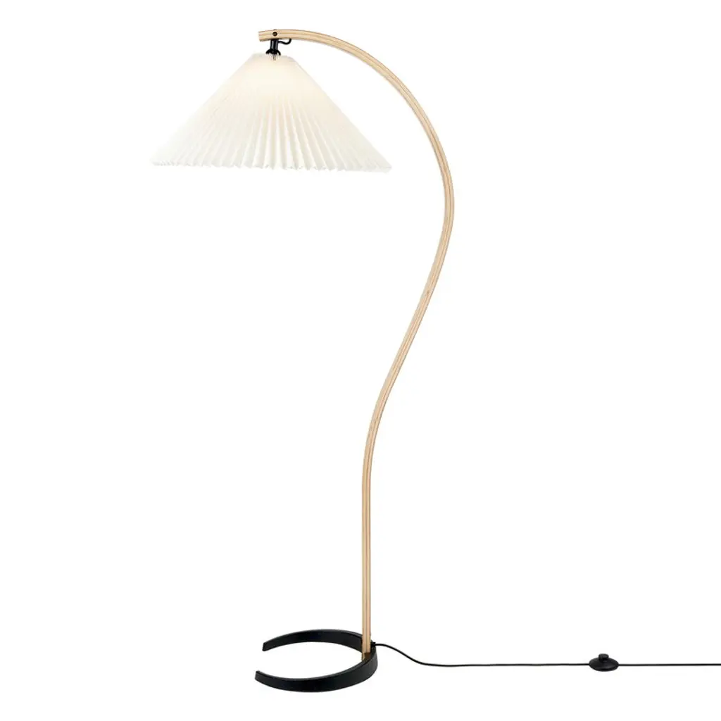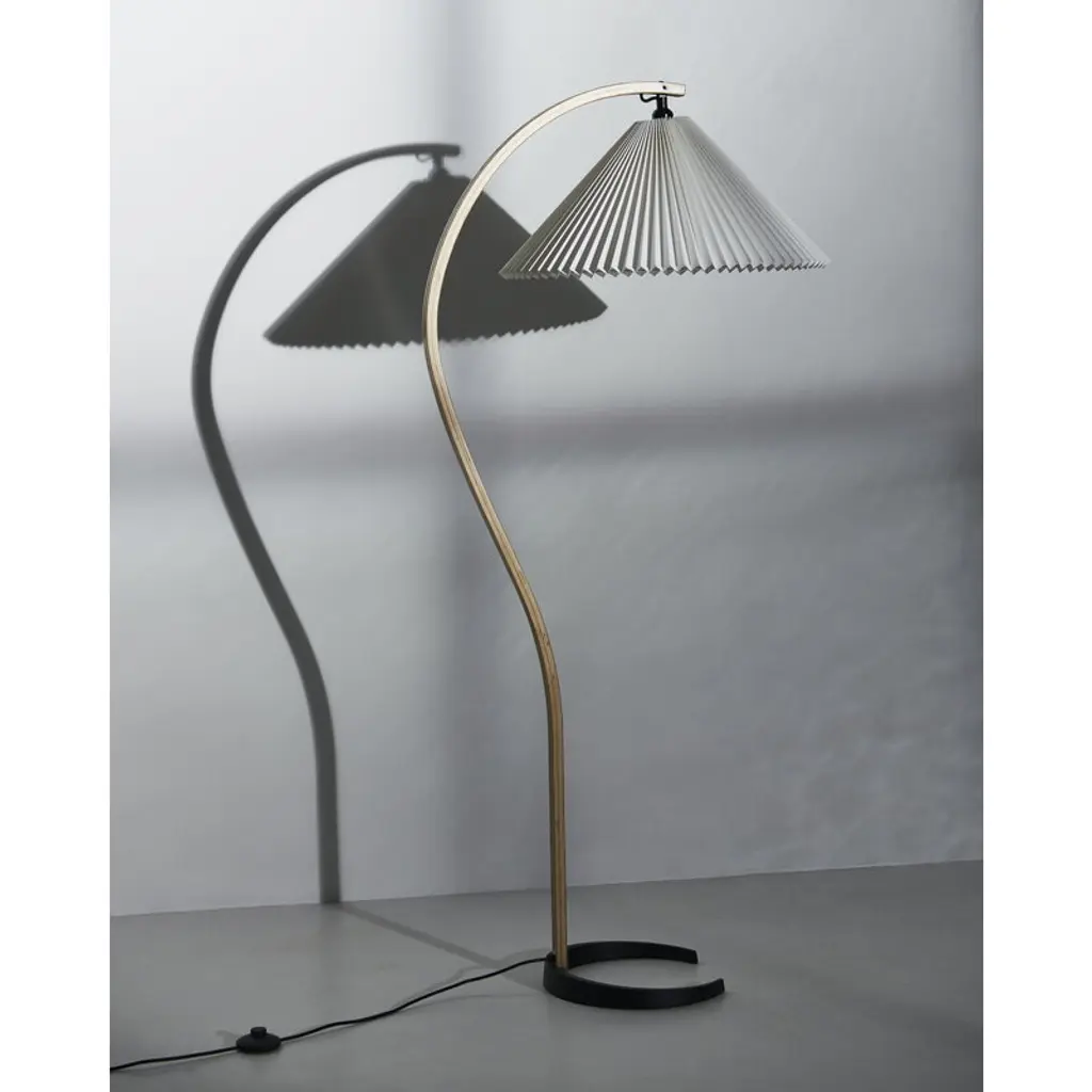 GUBI's Timberline floor lamp was originally created by designer Mads Caprani in the 1970s and is now reissued, to the delight of all design lovers. The story says that the luminaire's distinctive shape was born when Caprani sat at his desk drawing question marks while designing a new luminaire – and suddenly realized that the question mark might just be the shape he was looking for. And one has to admit: the floor lamp's slightly arching leg really does resemble the soft curve of the question mark! Mads Caprani's luminaires are well-known for their detailed shades, and the Timberline is no exception. The attractive floor lamp is completed by an extremely beautiful pleated canvas shade that softens the light from the lamp inside. The delicate luminaire is ideal to create a gentle atmosphere in the living room and the bedroom but also finds a place in the home office as a work lamp or reading light.