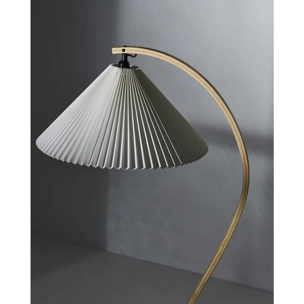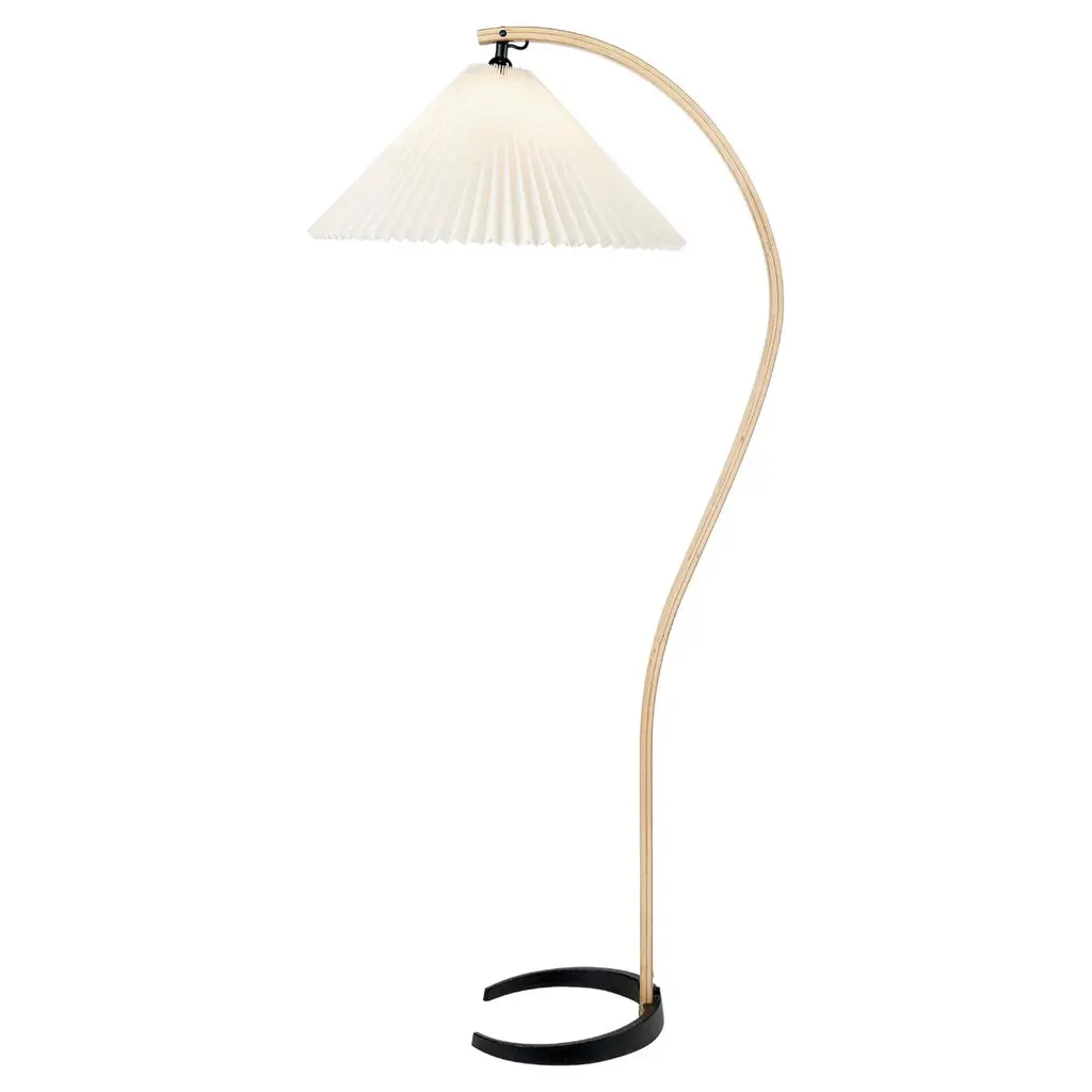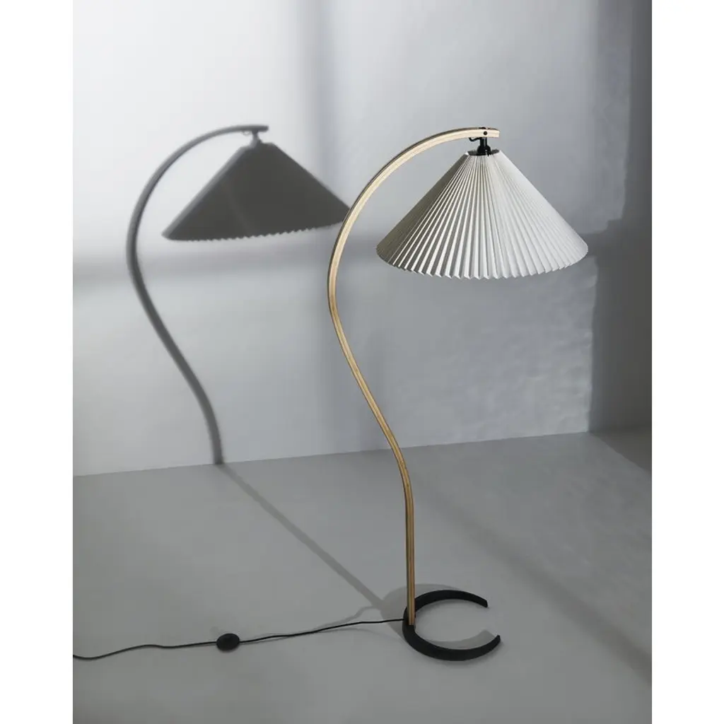 GUBI's Timberline floor lamp was originally created by designer Mads Caprani in the 1970s and is now reissued, to the delight of all design lovers. The story says that the luminaire's distinctive shape was born when Caprani sat at his desk drawing question marks while designing a new luminaire – and suddenly realized that the question mark might just be the shape he was looking for. And one has to admit: the floor lamp's slightly arching leg really does resemble the soft curve of the question mark! Mads Caprani's luminaires are well-known for their detailed shades, and the Timberline is no exception. The attractive floor lamp is completed by an extremely beautiful pleated canvas shade that softens the light from the lamp inside. The delicate luminaire is ideal to create a gentle atmosphere in the living room and the bedroom but also finds a place in the home office as a work lamp or reading light.