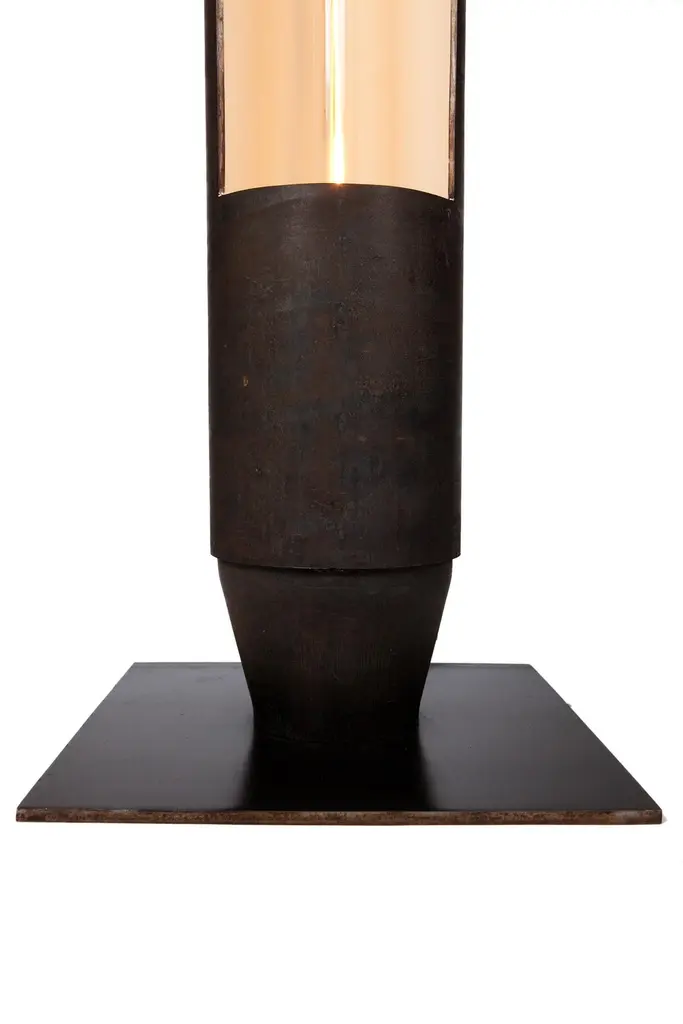 Floor lamp made of rough steel which is patinated. Inside covered with white chalk paint.Transparent led lamps inside.