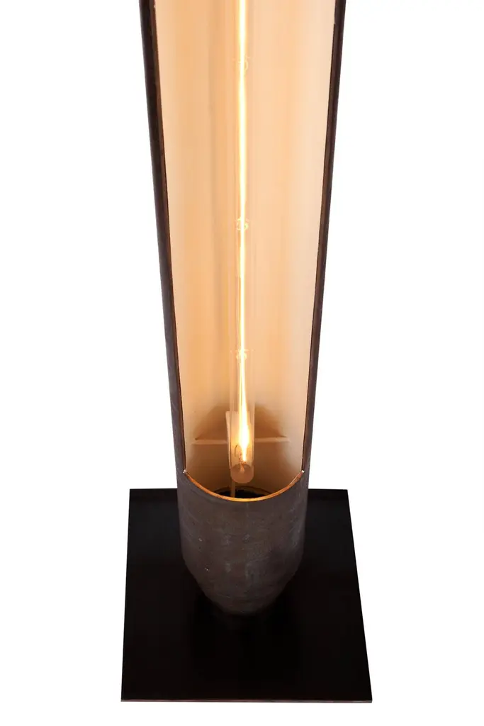 Floor lamp made of rough steel which is patinated. Inside covered with white chalk paint.Transparent led lamps inside.