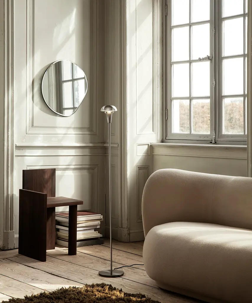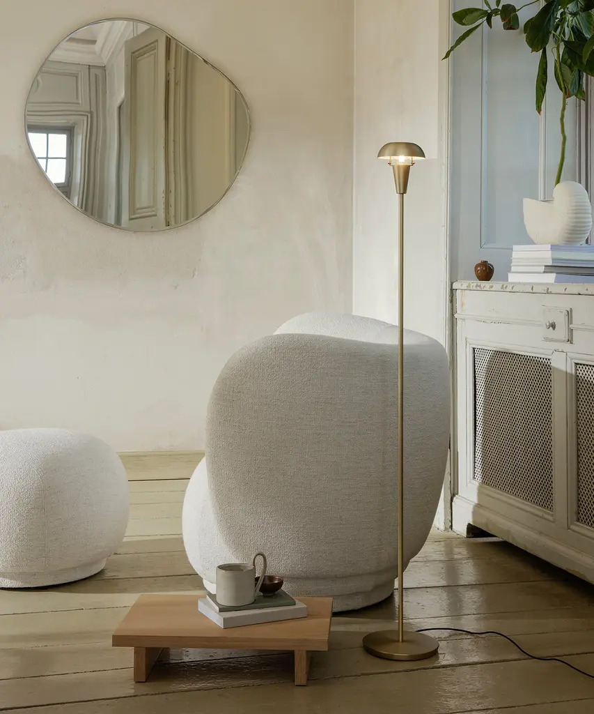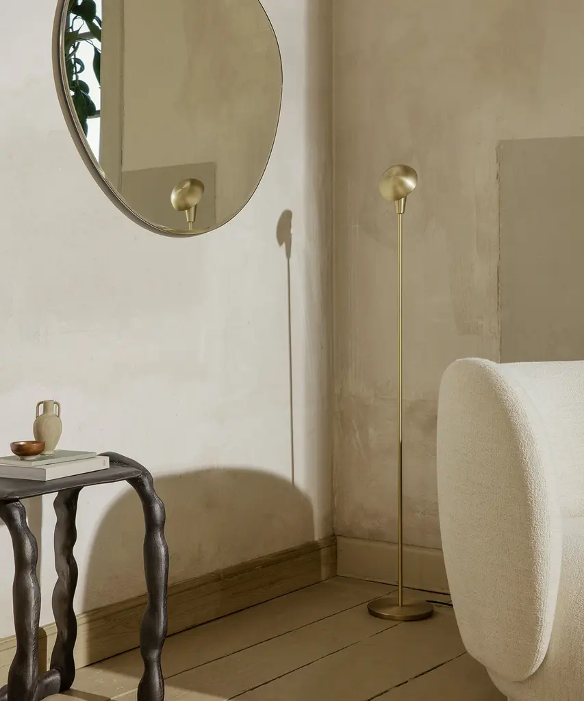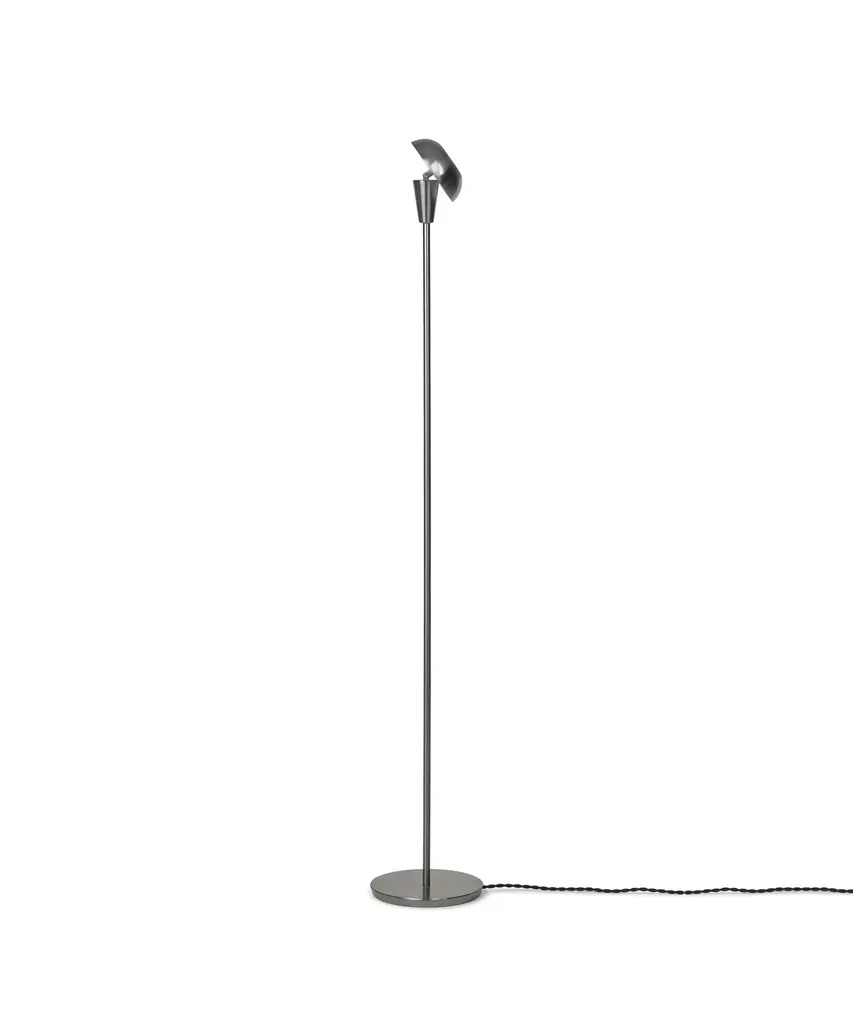 The Tiny Floor Lamp works as a functional and decorative light source. Due to its petite, tall, and slim look, it fits effortlessly in most corners, or behind your couch where you need some extra light to create a cozy atmosphere. Inspired by industrial Art Deco, it exudes simplicity in both expression and its metal construction. The useful tipping head makes it possible for you to tilt the shade to create a different look for the lamp, as well as to fit the atmosphere of the room. Playing on proportions, the tiny shade in combination with the tall, slim base gives the Tiny Floor Lamp its charismatic design trait and personality. Designed and produced by the Copenhagen-based studio Ferm Living.