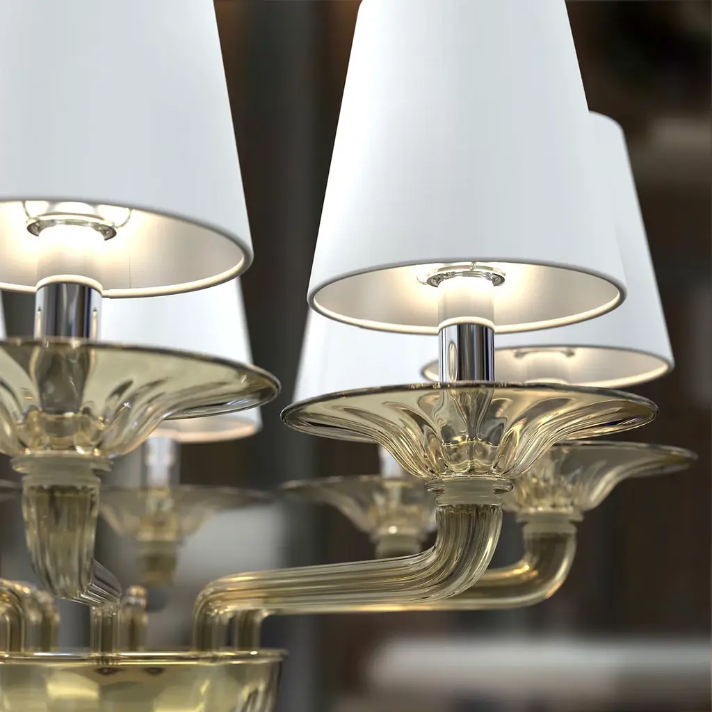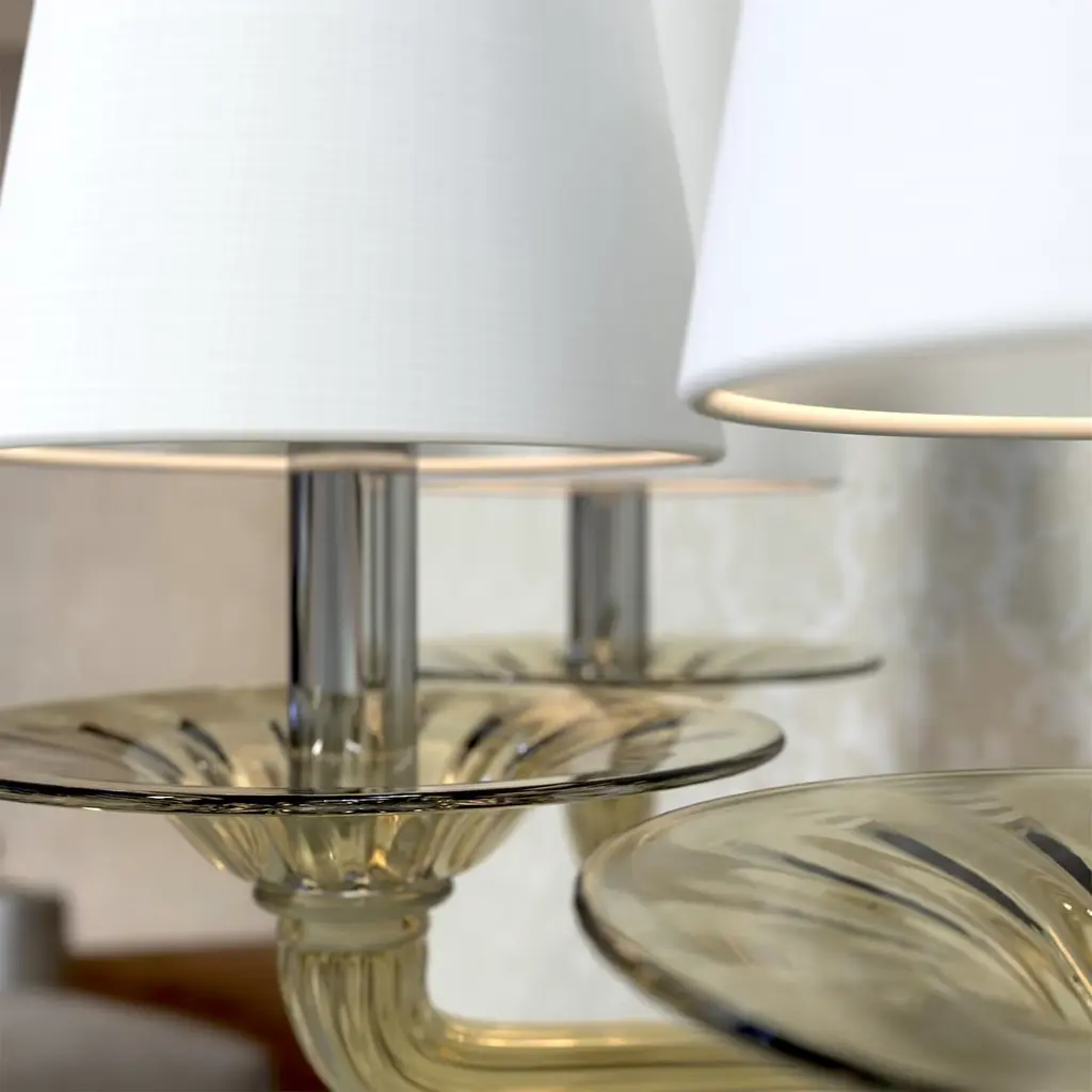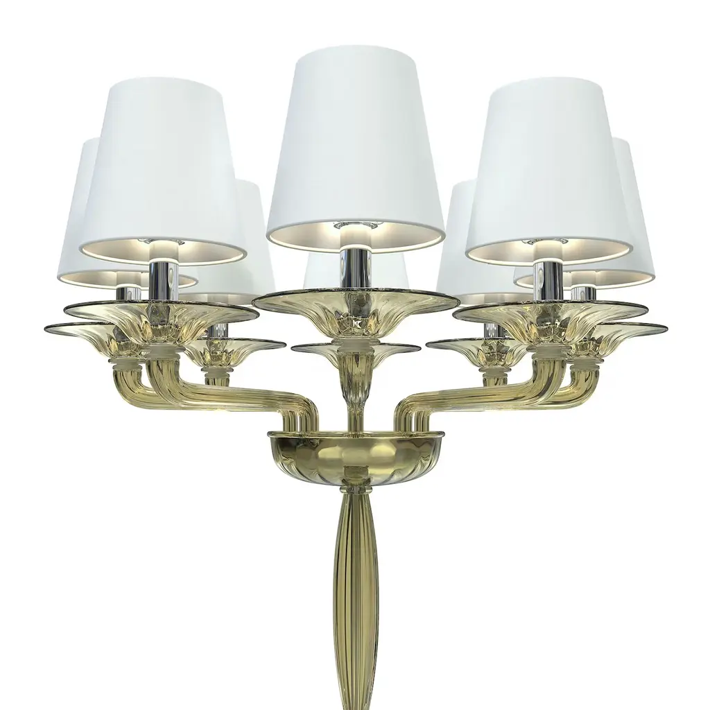 This 8-light floor lamp is entirely handmade in our furnace in Murano Island by master glassmakers according to ancient and secret traditions handed down from father to son since 1300. For centuries, Murano glass has been the most famous glass in the world and one of the most desired Made in Italy products for furnishing luxury environments. Since the dawn of time, Murano glass chandeliers and furnishing objects have decorated the most prestigious homes and have given an unmistakable light to any room. Any of our Murano Glass lighting fixtures is always unique and unrepeatable, the result of artisan tradition and advanced industrial techniques. For this reason, its origin is certified by the Trademark of the Italian law “Vetro Artistic Murano”. Glass color: Fumè. Customizable in glass colors and lampshades.