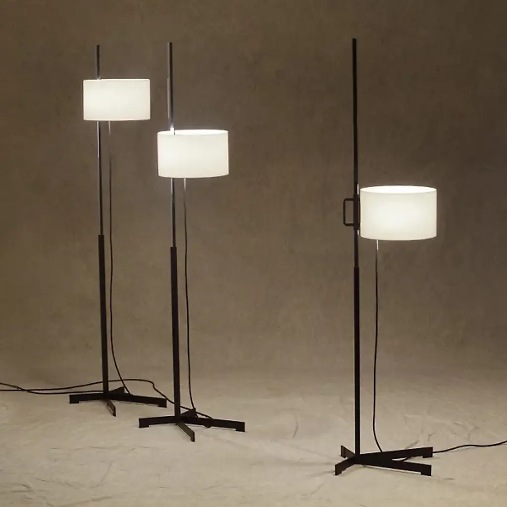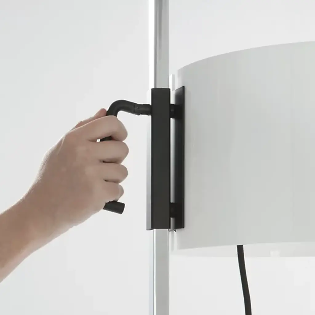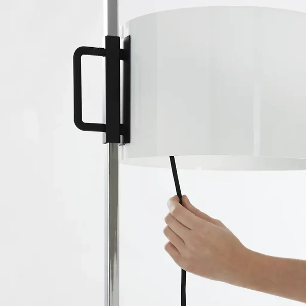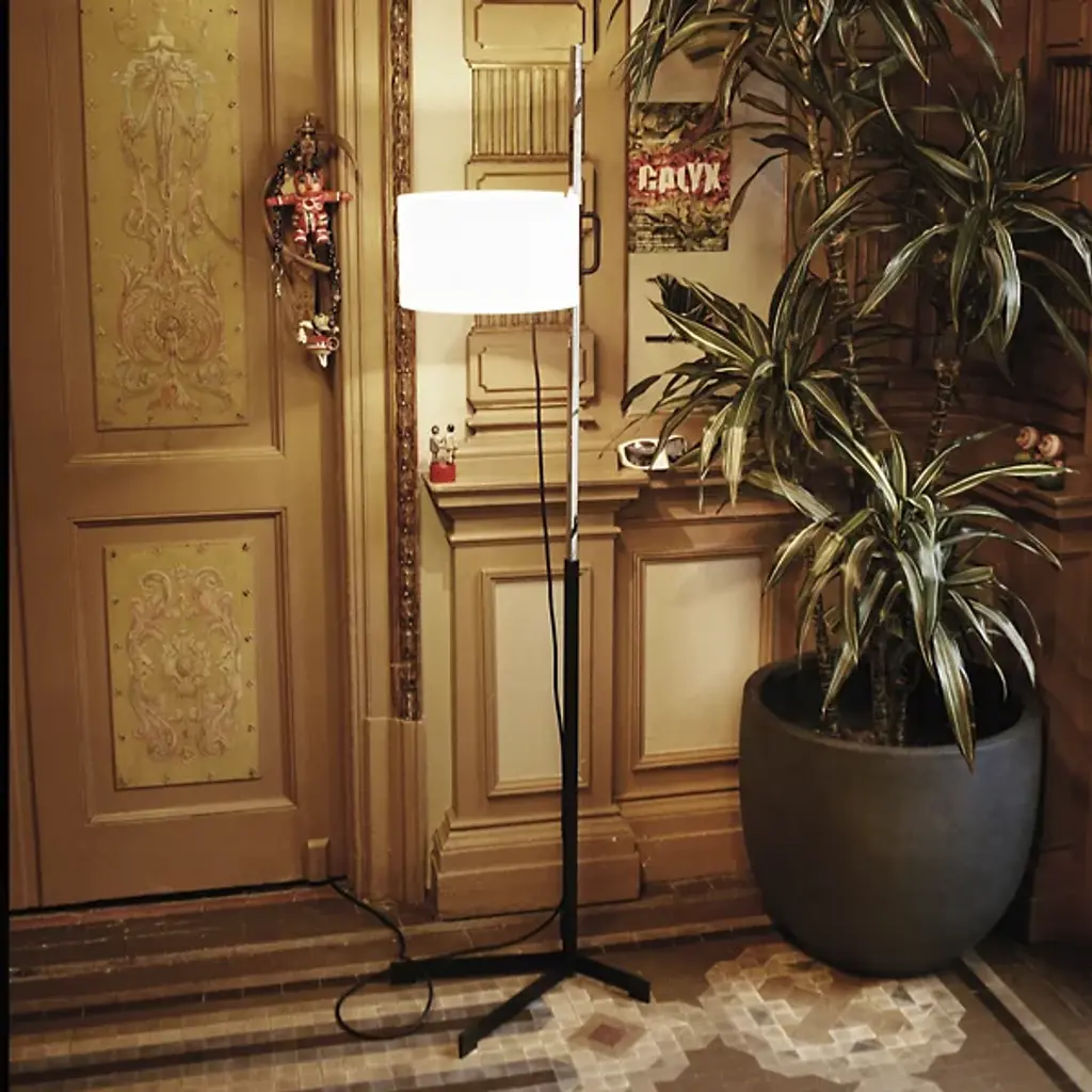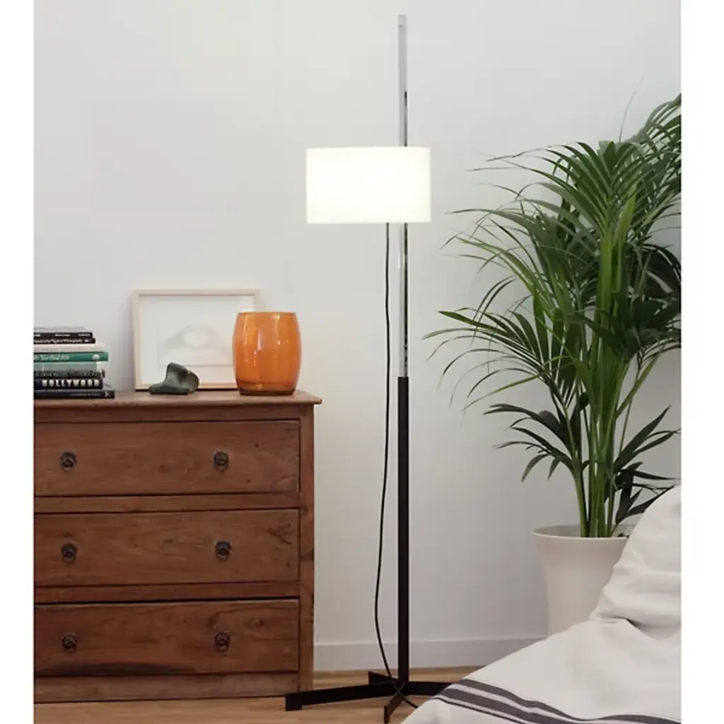 The Santa & Cole TMC Floor Lamp updates the original wooden design by Miguel Mila in 1961, exchanging the base for stainless steel and the cardboard shade for polycarbonate. The same mechanics allow the shade to be vertically adjusted, only now a convenient handle (in the same color as the base) is added to slide the shade along the stem, which can then be locked in to place. To turn off the light, simply pull gently on the cord hanging from the shade.