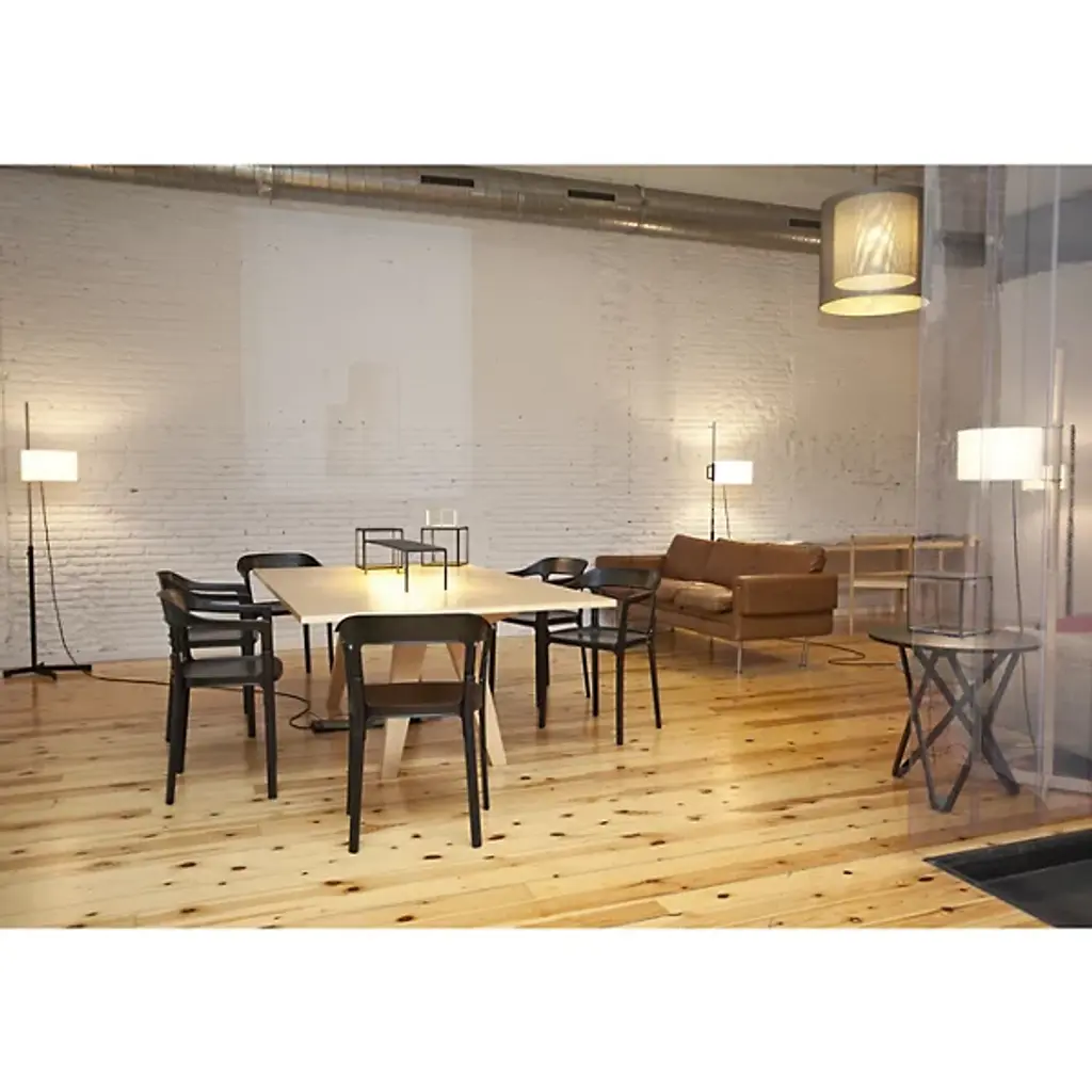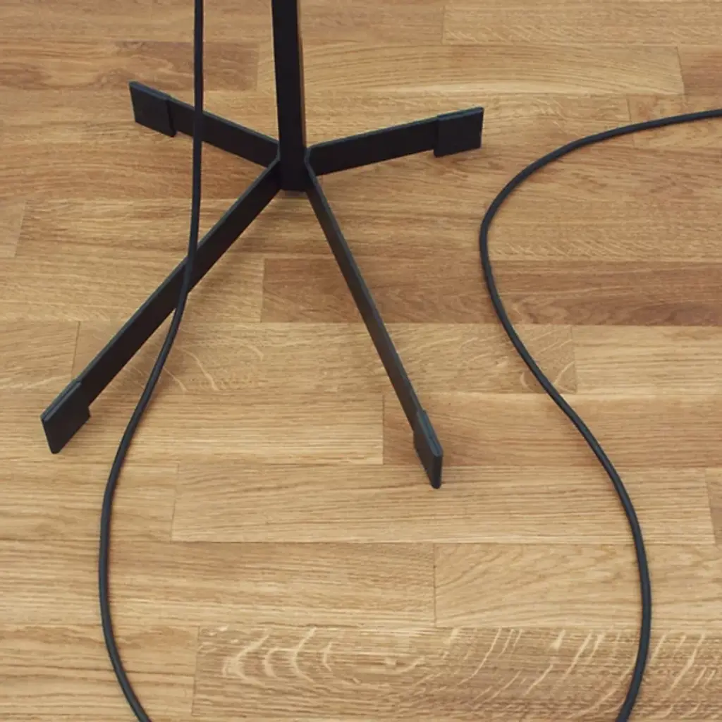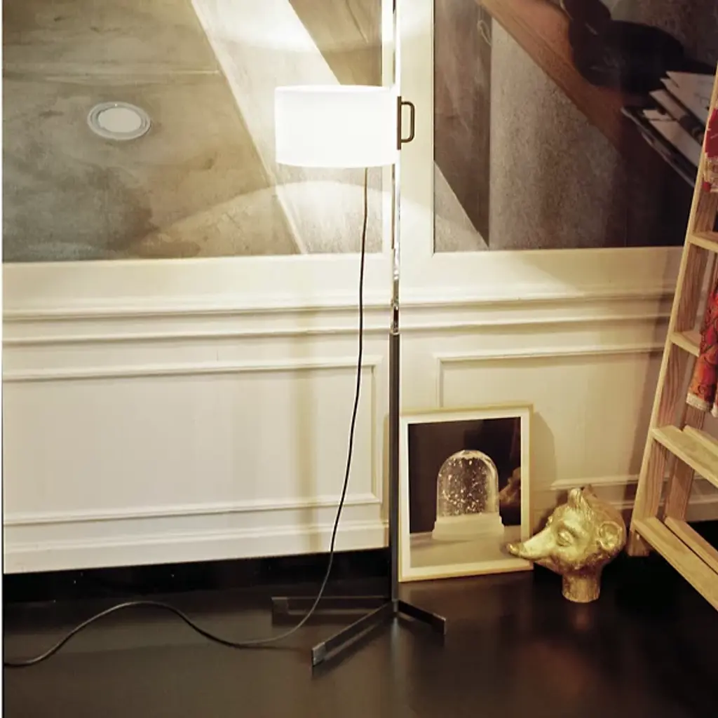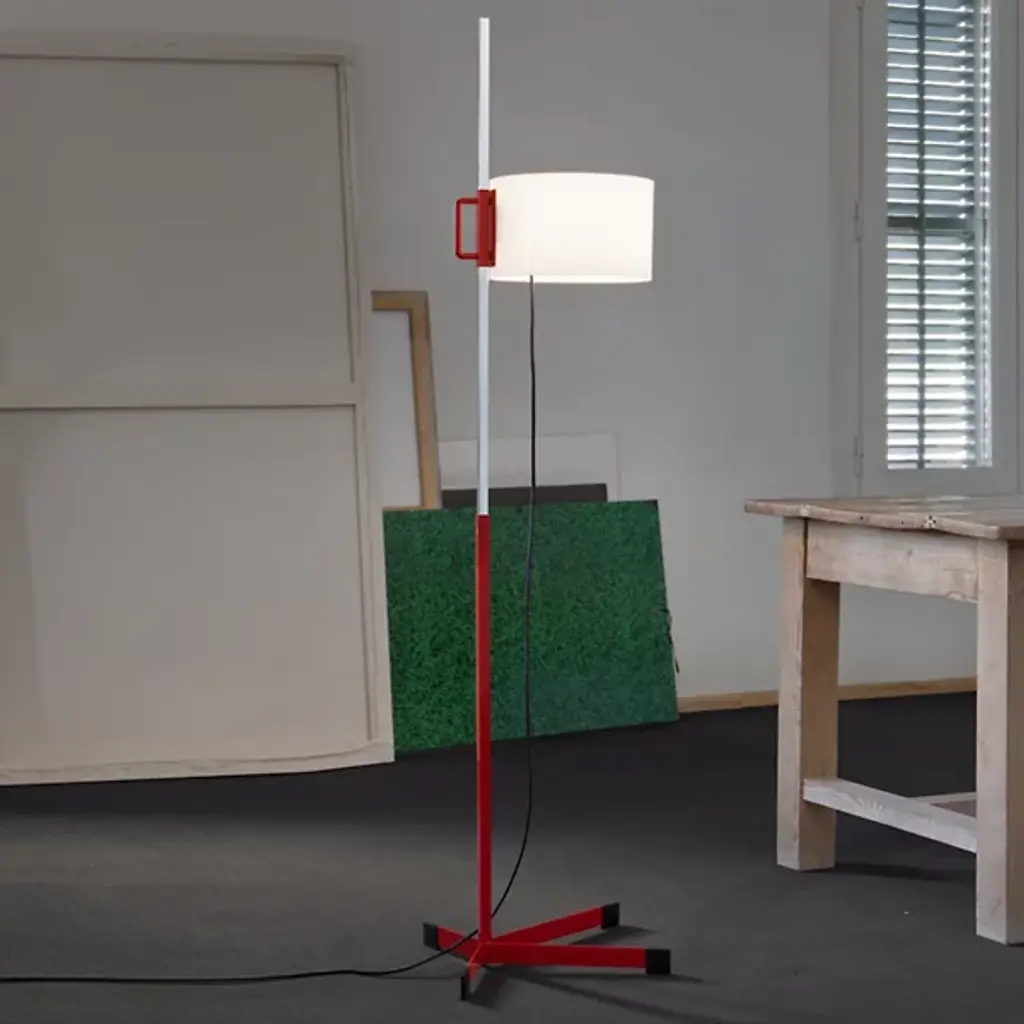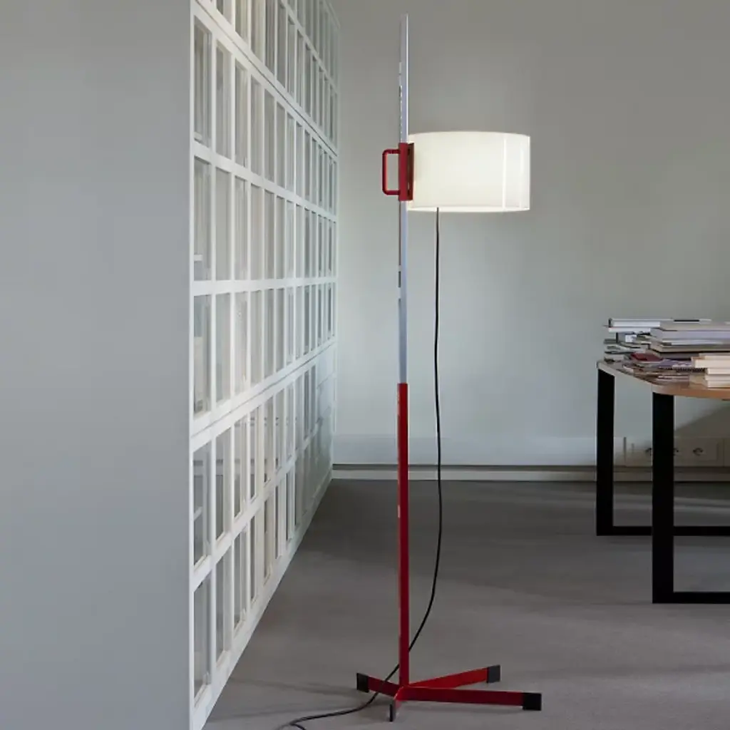 The Santa & Cole TMC Floor Lamp updates the original wooden design by Miguel Mila in 1961, exchanging the base for stainless steel and the cardboard shade for polycarbonate. The same mechanics allow the shade to be vertically adjusted, only now a convenient handle (in the same color as the base) is added to slide the shade along the stem, which can then be locked in to place. To turn off the light, simply pull gently on the cord hanging from the shade.