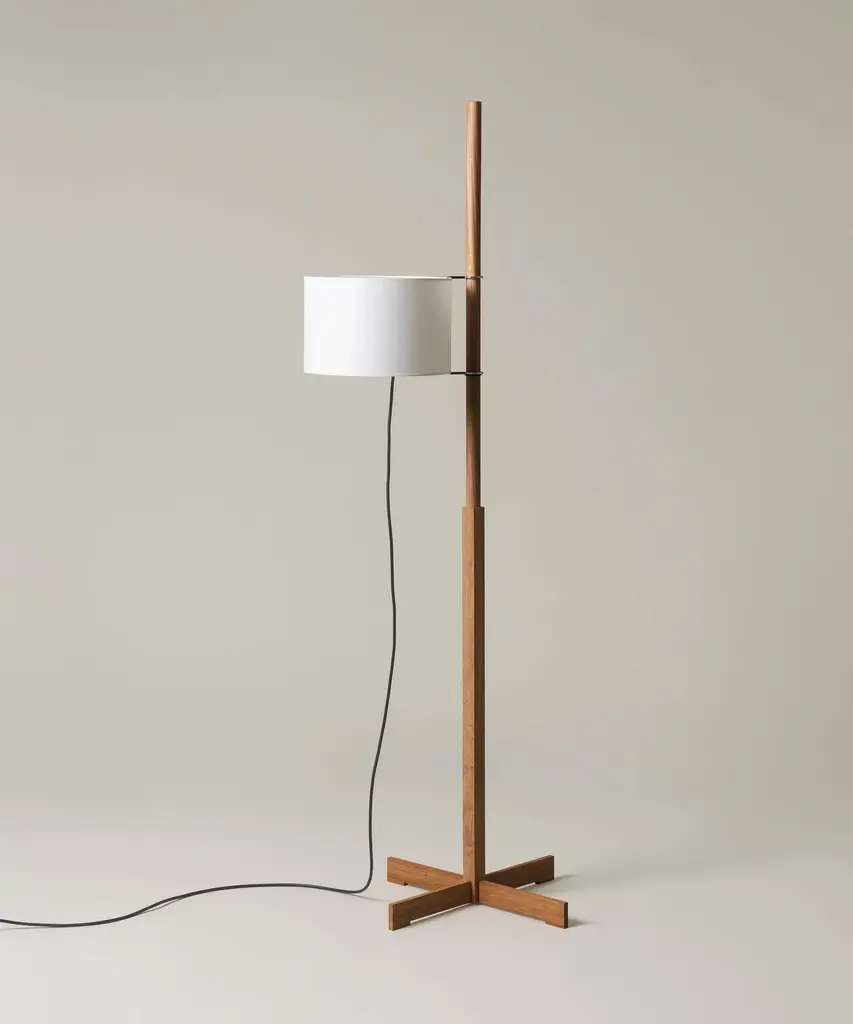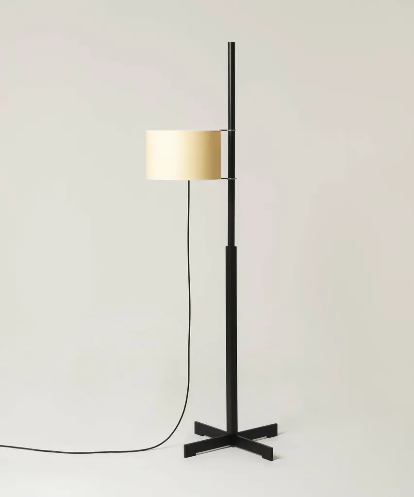 The TMM amp was part of Miguel Milá’s first collection for TRAMO, the company he founded to produce his own work in post-war Spain. He dabbled in a profession that he would later go on to master, that of a pre-industrial designer, seeking convenient solutions with the technology available. In an exquisite demonstration of formal serenity and functional efficiency, Miguel Milá brilliantly separated the three basic components of any lamp: the structure, the electrical components, and the shade, which are easily assembled and maintained throughout its very long life. A cross-shaped base supports a square shaft that becomes circular in the middle, allowing the shade to be moved up and down. The shade’s height is adjustable via a rubber band stopper. A genuine lesson in intelligence and good taste, making minimal use of components. Produced by the Barcelona-based lighting purveyor, Santa & Cole.
