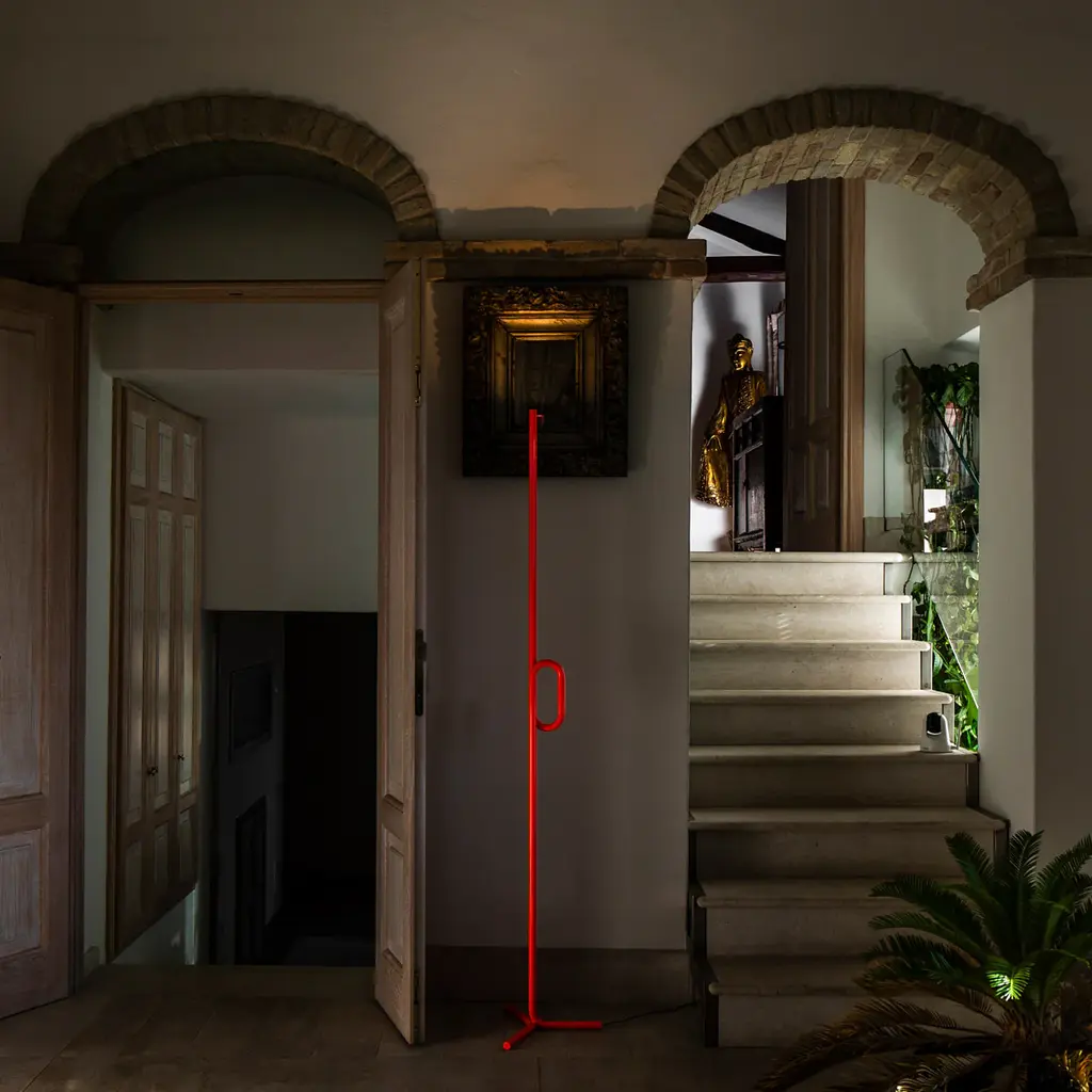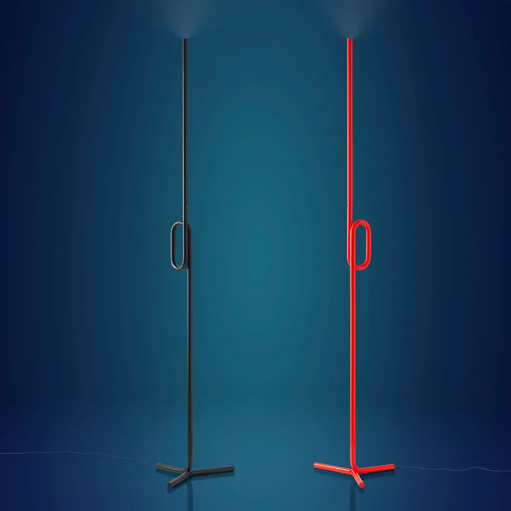 With its compact footprint, slender body and no-shade design, the Tobia Floor Lamp is ideal for making a statement in small spaces. The design’s body emits light from the top that reflects from your ceiling and creates a warm atmosphere. A stylish flourish is created by a loop in the center of the lamp’s slim body. The Tobia is made by Foscarini, a manufacturer with work in MoMA's collection.Features of the Tobia Floor Lamp include: Three-pronged base provides stability. Adjustable and dimmable with a touch dimmer. Bulb: 1 LED/15W/120V. 2,000 lumens. Powered by standard plug-in. 63” cord length. Made from aluminum. Measures 69h x 11"diam. at the base.