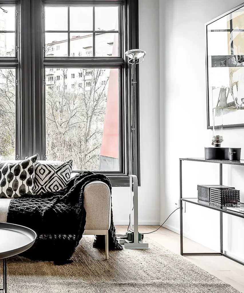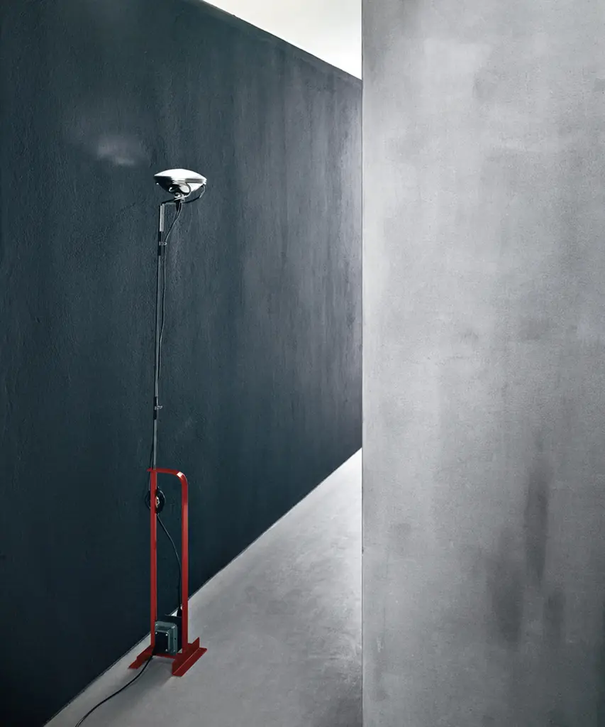 Its designers named it for the English word for "toy," for good reason: This inventive lamp inspires the imagination, blending an industrial style with a timeless and whimsical design. It's easy to see why this legendary favorite designed by the famed Castiglioni brothers has garnered so many awards, even earning a place in the permanent collection at the Museum of Modern Art in New York. The Toio floor lamp has an enamel steel base that supports a hexagon-shaped, nickel-plated brass stem. Along the stem are fishing rod rings used to guide the electrical cord from the bulb to the transformer. A cleat on the base, like that found on a boat or ship, serves as a functional element designed to keep the cord neatly coiled in when the lamp is adjusted to a lower height. The Toio comes with an incandescent bulb and provides indirect light. Adjustable height. Available in black, red, or white finish. Inspiration behind the design: The contemporary floor lamp was designed by brothers Achille and Pier Giacomo Castiglioni, who were inspired by a car's headlight. This authentic design is produced in Italy exclusively by Flos.