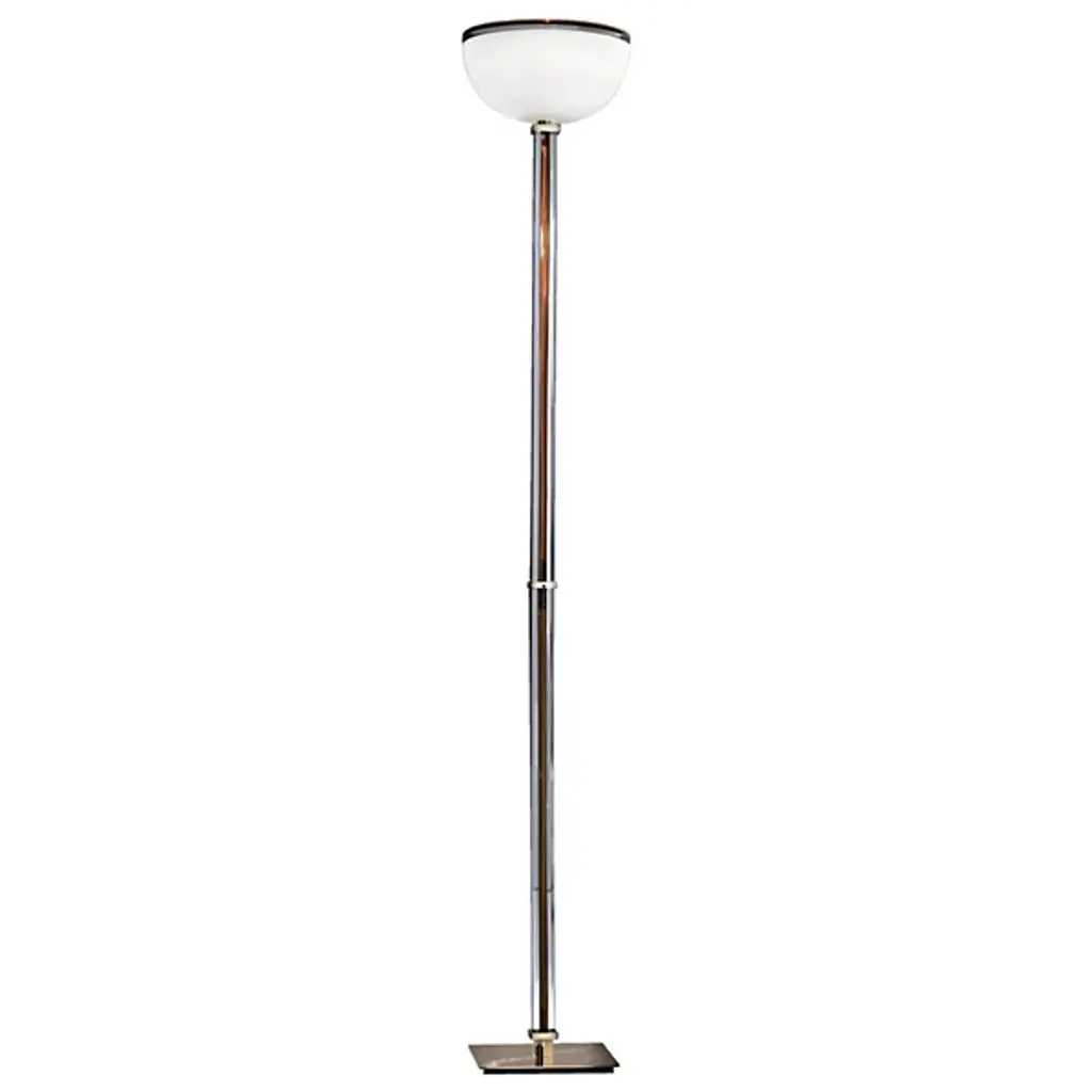 The Tolboi Floor Lamp from Venini is crafted with the utmost diligence in Italy. It is designed in the artisanal tradition of Italian design. This floor lamp features a geometric floorplate which keeps it properly balanced. The floor lamp’s fine glass casing surrounds the framework for a gorgeously outlined profile that holds your gaze. An exquisite shade of glass crowns Tolboi, resembling in part the form of a bowl upwardly turned. The shade glows brightly with light from an efficient LED.