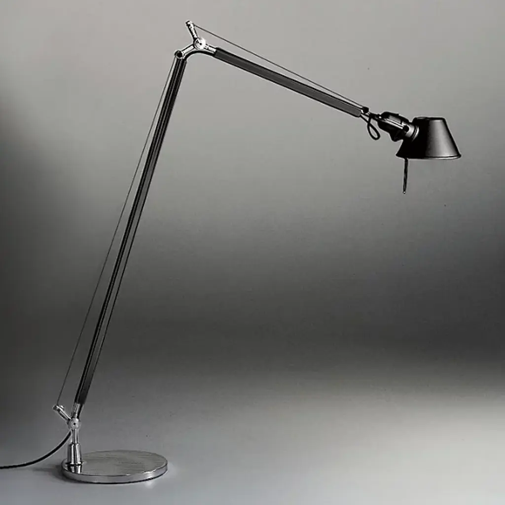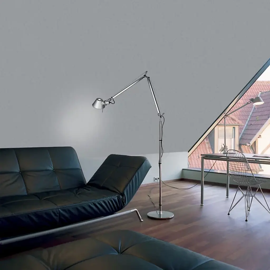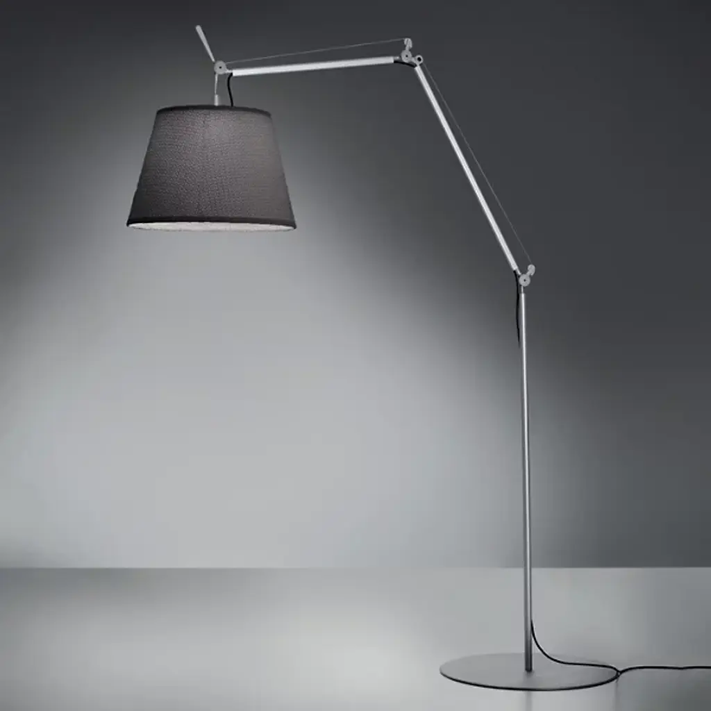The Artemide Tolomeo Reading Floor Lamp was designed by Michele De Lucchi and Giancarlo Fassina to provide the superb light and directionality of the original Tolomeo table lamp--but on a larger scale. This floor lamp is made entirely out of aluminum and steel, the shade and arms infinitely and smoothly adjustable.