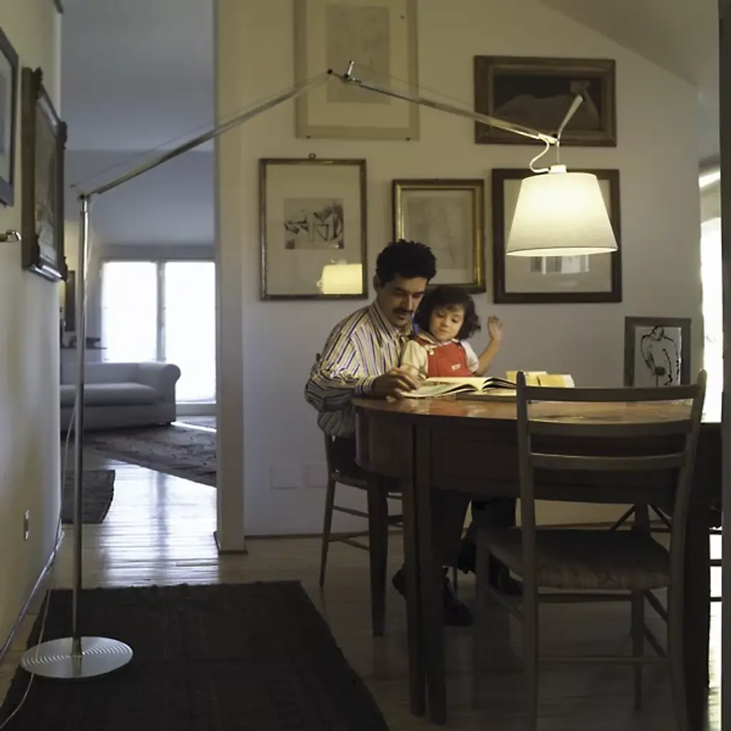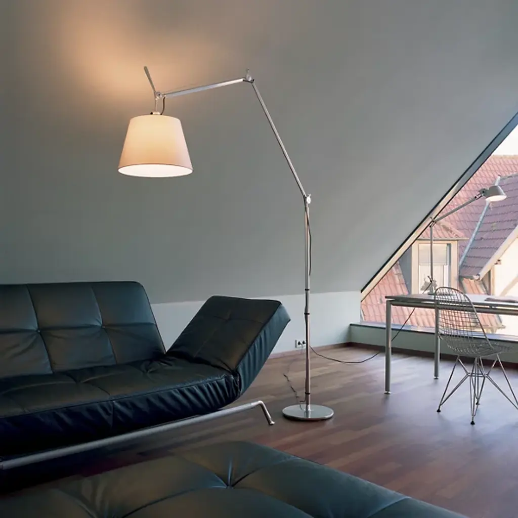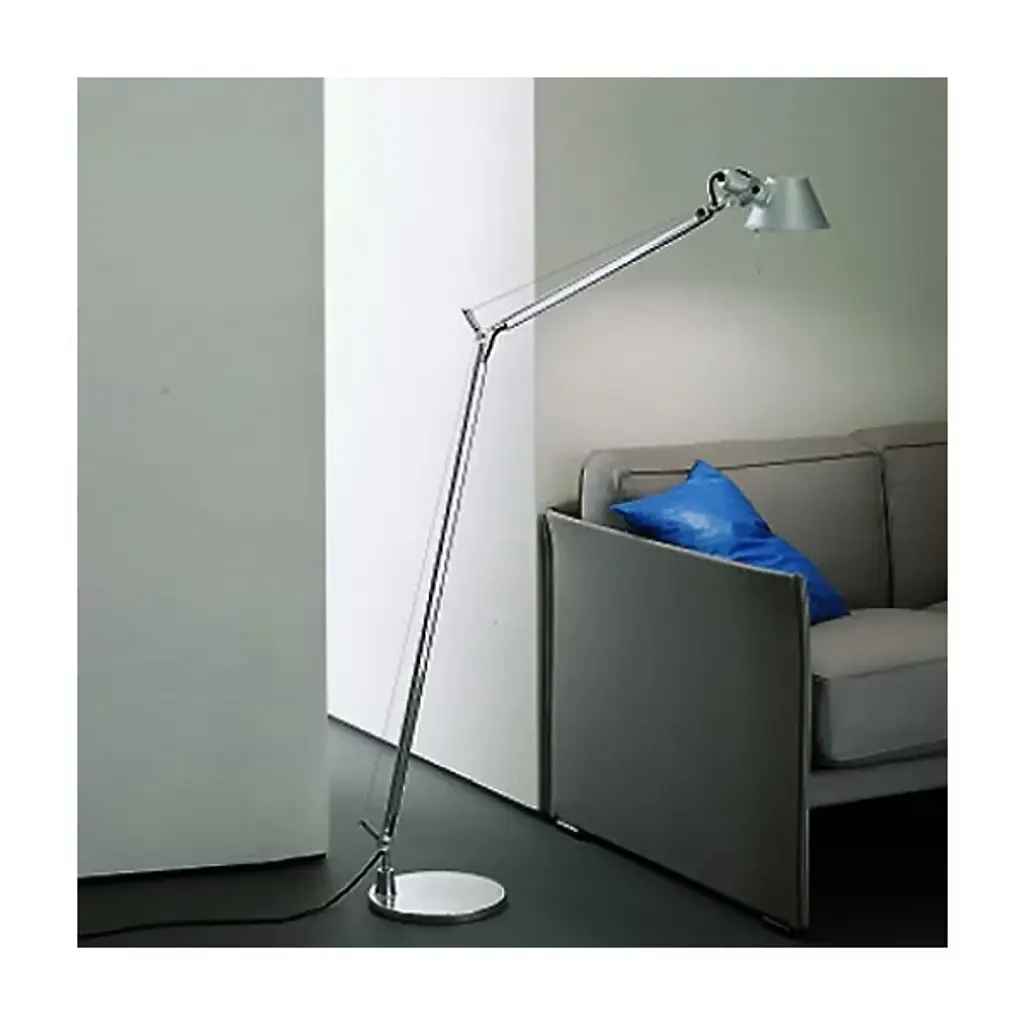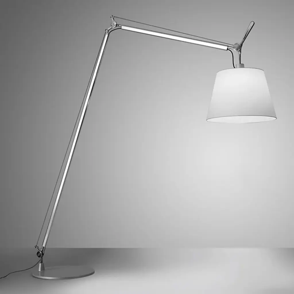 Designed by Michele De Lucchi and Giancarlo Fassina. The Tolomeo with Shade Reading Floor Lamp from Artemide draws on the appearance of the original desk lamp, adapting it into a stylish floor lamp to read by. It couples the sleek adjustability that’s the trademark of the Tolomeo family with a convenient shade that adds visual spice. The floor lamp features fully adjustable, articulated arms in brilliantly polished aluminum, lightweight for easy movement yet also extremely durable.