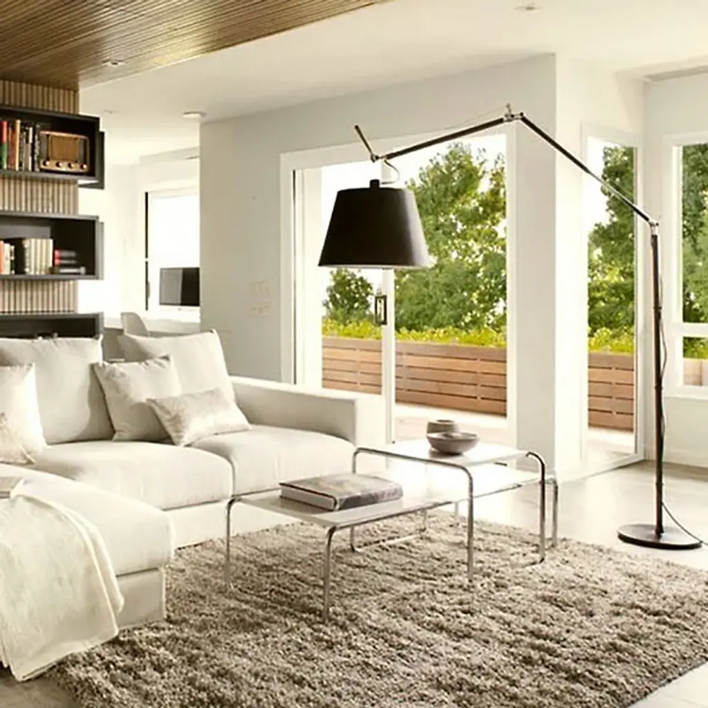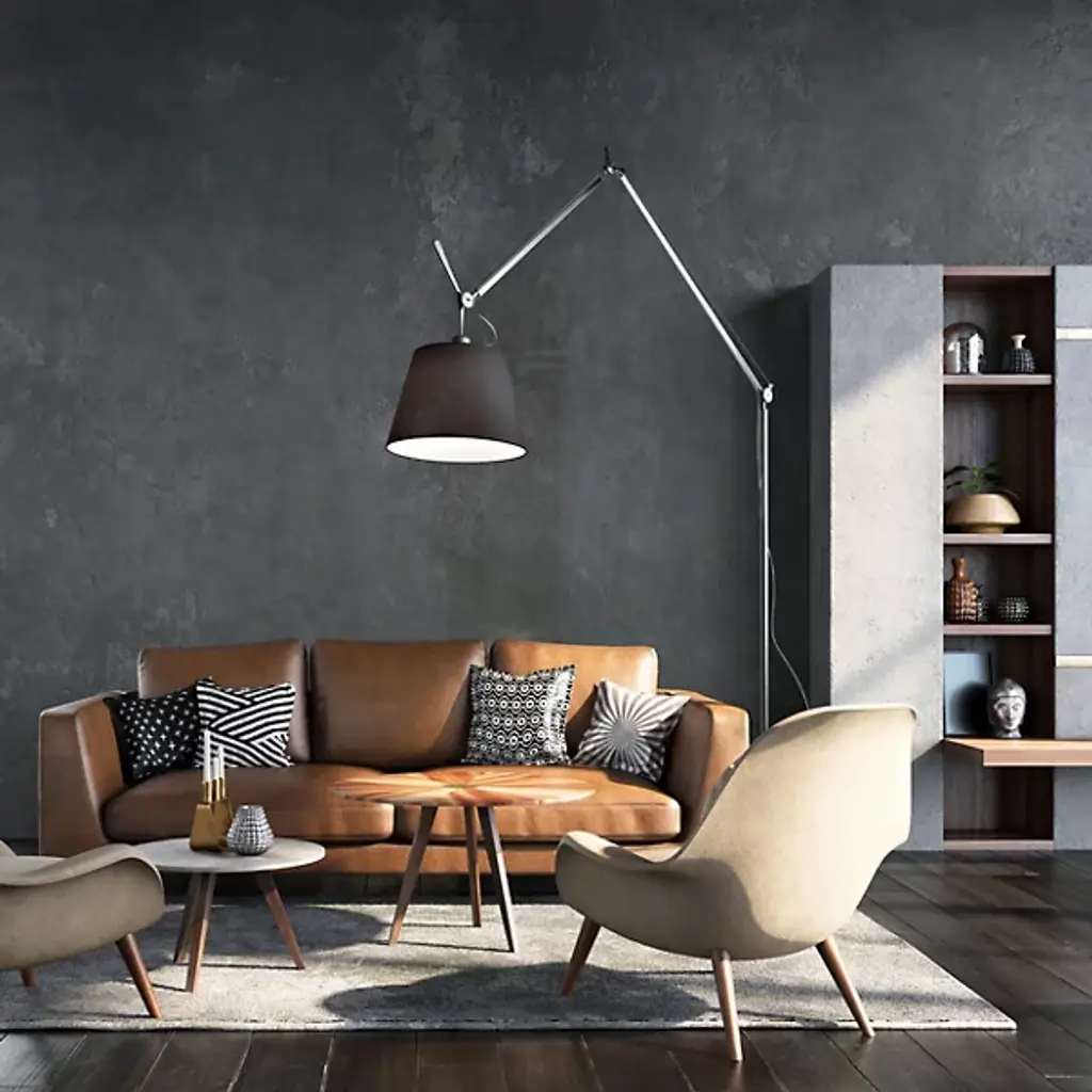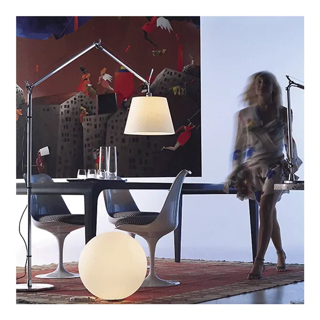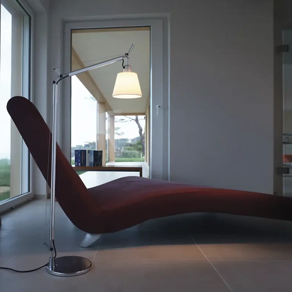 Designed by Michele De Lucchi and Giancarlo Fassina. The Tolomeo with Shade Reading Floor Lamp from Artemide draws on the appearance of the original desk lamp, adapting it into a stylish floor lamp to read by. It couples the sleek adjustability that’s the trademark of the Tolomeo family with a convenient shade that adds visual spice. The floor lamp features fully adjustable, articulated arms in brilliantly polished aluminum, lightweight for easy movement yet also extremely durable.