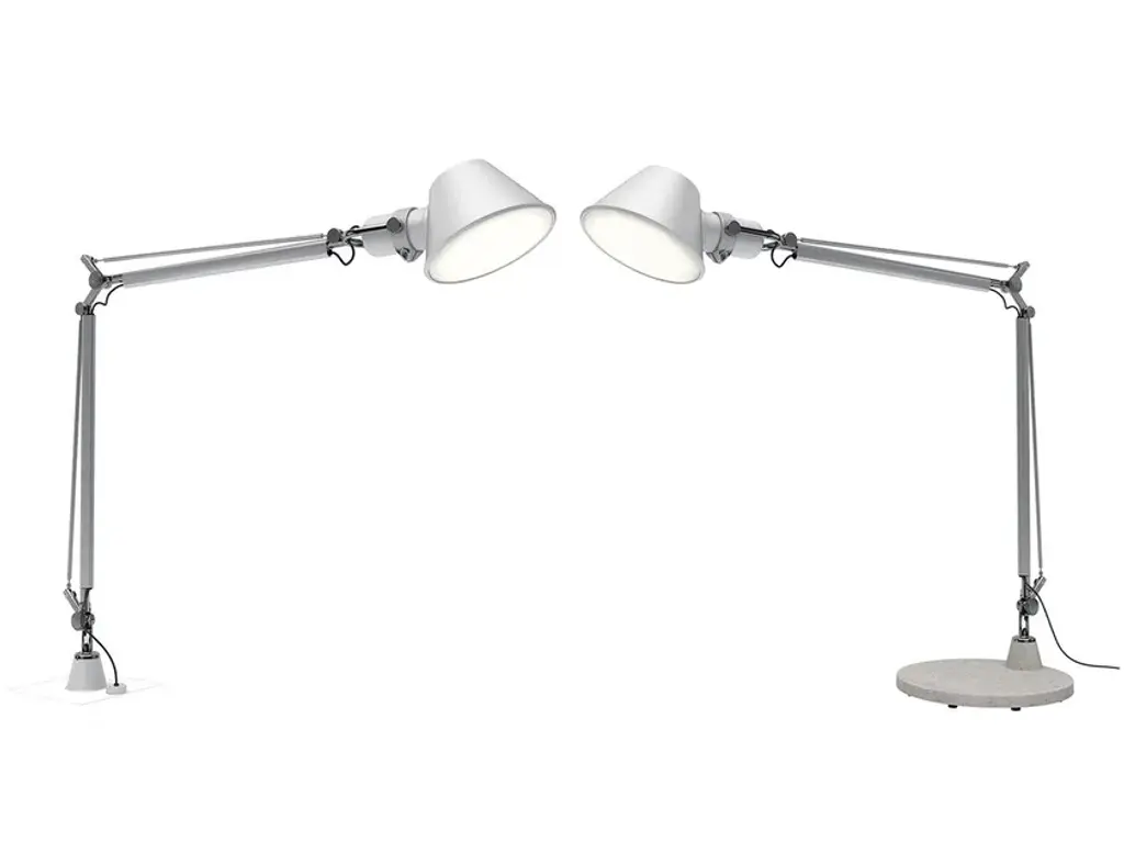 The famous Tolomeo, icon of the Italian Design, becomes giant. In scale 4:1 relative to the table model, it’s both indoor and outdoor. Base made up of mass-coloured concrete; mobile-arm structure in extruded EN-AW-6060 aluminium with bright anodizing treatment; diffuser in mass-pigmented polypropylene, screen in light-diffusing silkscreened methacrylate, reflector in painted aluminium; polished-painted articulations in die-cast EN-AB 46100 aluminium; adjustment system in AISI 316 stainless steel; silicone seal gaskets.FEATURESColour: Silver greyInstallation: FloorMaterial: Aluminum, technopolymer, cement, inox steelEnvironment: OutdoorArea contract: Hospitality, nullEmission: Direct AdjustableWatt: 55WVoltage: 220V-240VDelivered lumens output: 5052lmCCT: 3000KEfficiency: 74%Efficacy: 91.85lm/WCRI: 80IP65SOURCES INCLUDEDCategory: LedNumber: 1Watt: 55WColor temperature (K): 3000K