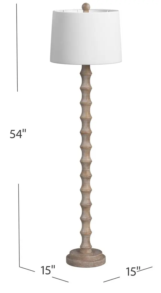 The Torian Floor Lamp blends rustic charm with farmhouse aesthetics, featuring a classic drum shade. Its bamboo-inspired design adds a touch of organic elegance to any space, bringing a light and airy feel to the room. Perfect for adding warmth and ambiance to your home, the Torian Floor Lamp effortlessly complements a variety of decor styles, making it a versatile and timeless lighting solution for any room.