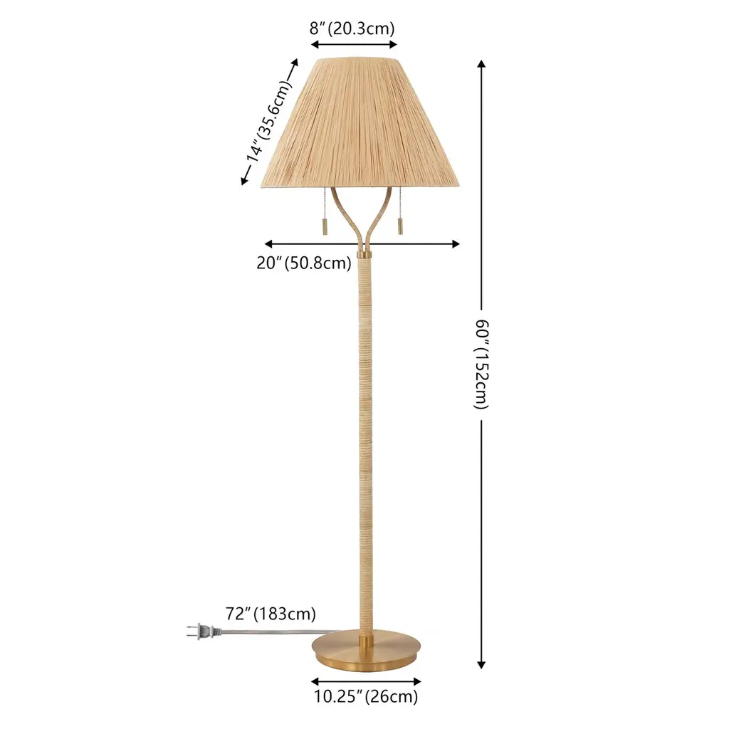 Torisa Iron/rattan Floor Lamp, Natural/gold