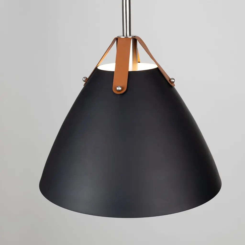 From designer Steven Sabados of S&C, the Tote collection is a definite fashion trend for your home or office décor. The matte black metal shades are suspended to the wiring with leather straps. The interior of the shades have a super reflective white finish for maximum light functionality. Two finishing touches for this design are the polished nickel accents, and the textile black wiring coverings. What a stunning floor lamp. (This collection has several hanging pendant options)