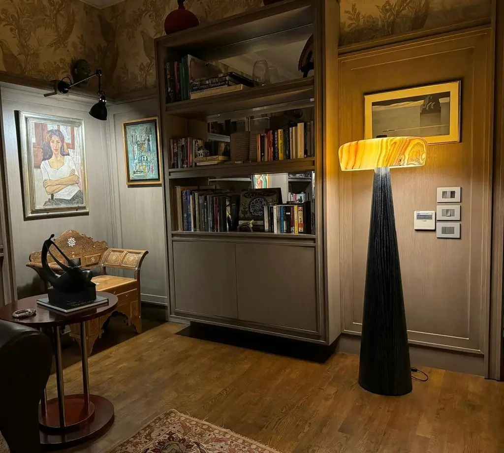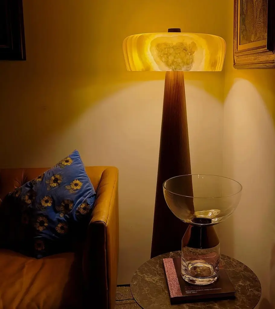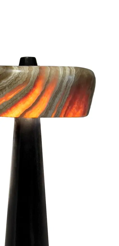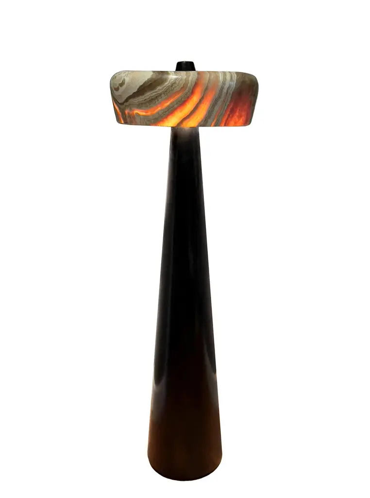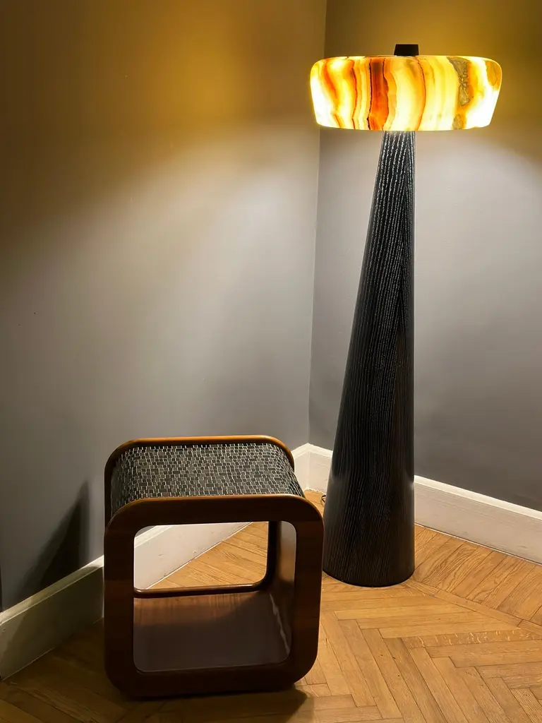 TOTEM floor lamp. A modern design statement with a subtle Pharaonic flavor.Designed and handmade in Egypt using traditional methods of craftsmanship. Base in solid oak, offered in natural, walnut or black stain. Also available in custom colors and finishes. Shade in hand carved Egyptian Alabaster or Italian Carrara marble.Wired with type-C plug and switch on black wire.LED bulbs not included.Designed by Hassan Abouseda for HAF. HAF is a boutique design studio in Cairo - Egypt showcasing designs by co-founder Hassan Abouseda, an architect and interior designer. While the aesthetic is modern in spirit, it is also days homage to classical Egyptian design and traditional Egyptian craftsmanship and materials.