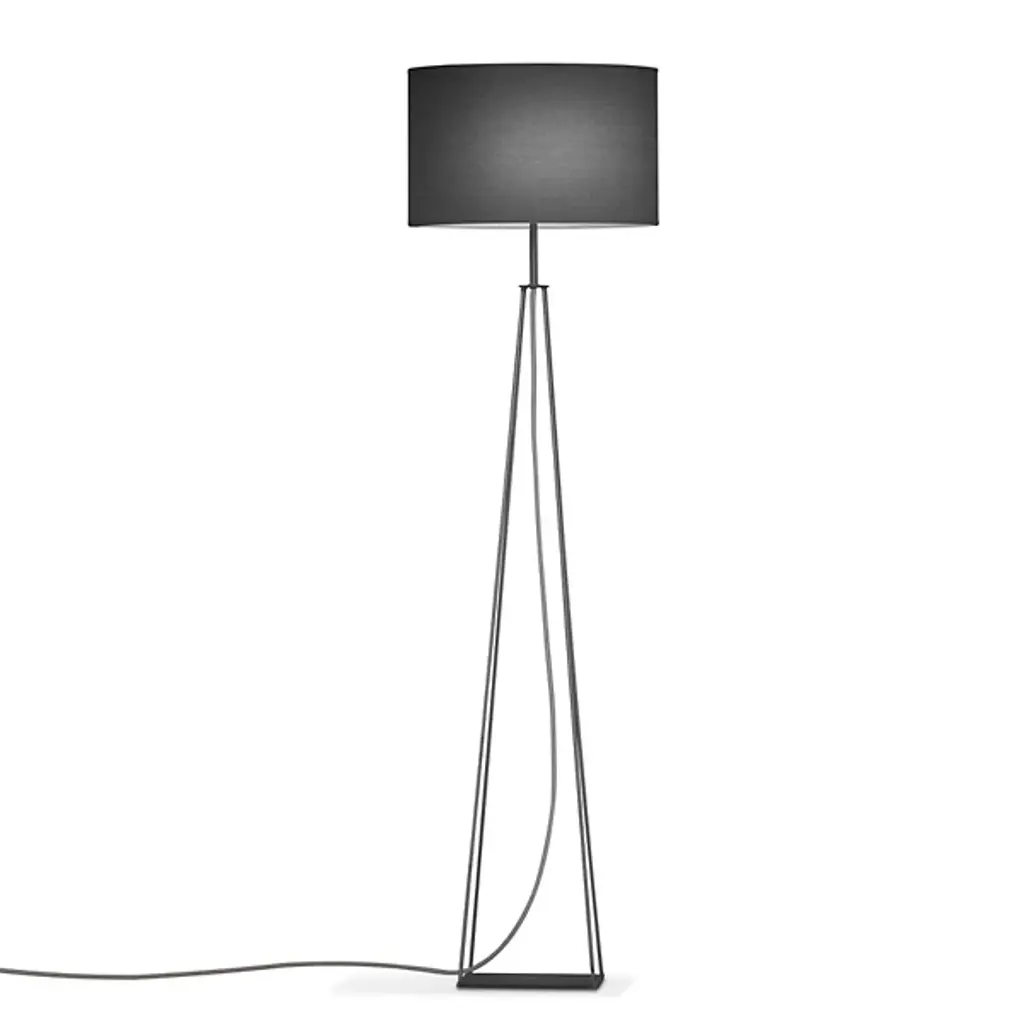 The Tower Floor Lamp from Seascape Lamps uses an unusual triangular structure to create a fixture that looks good from any angle. Built from quarter-inch steel rod and a heavy metal base, this lamp stands with absolute stability on any floor surface. The three-sided frame rises to support a simple drum shade that distributes light evenly in all directions. A mesh-covered cord runs along one edge, adding a small but intentional detail to the minimal frame. This piece works perfectly beside reading chairs, next to couches, or in corners that need additional illumination.