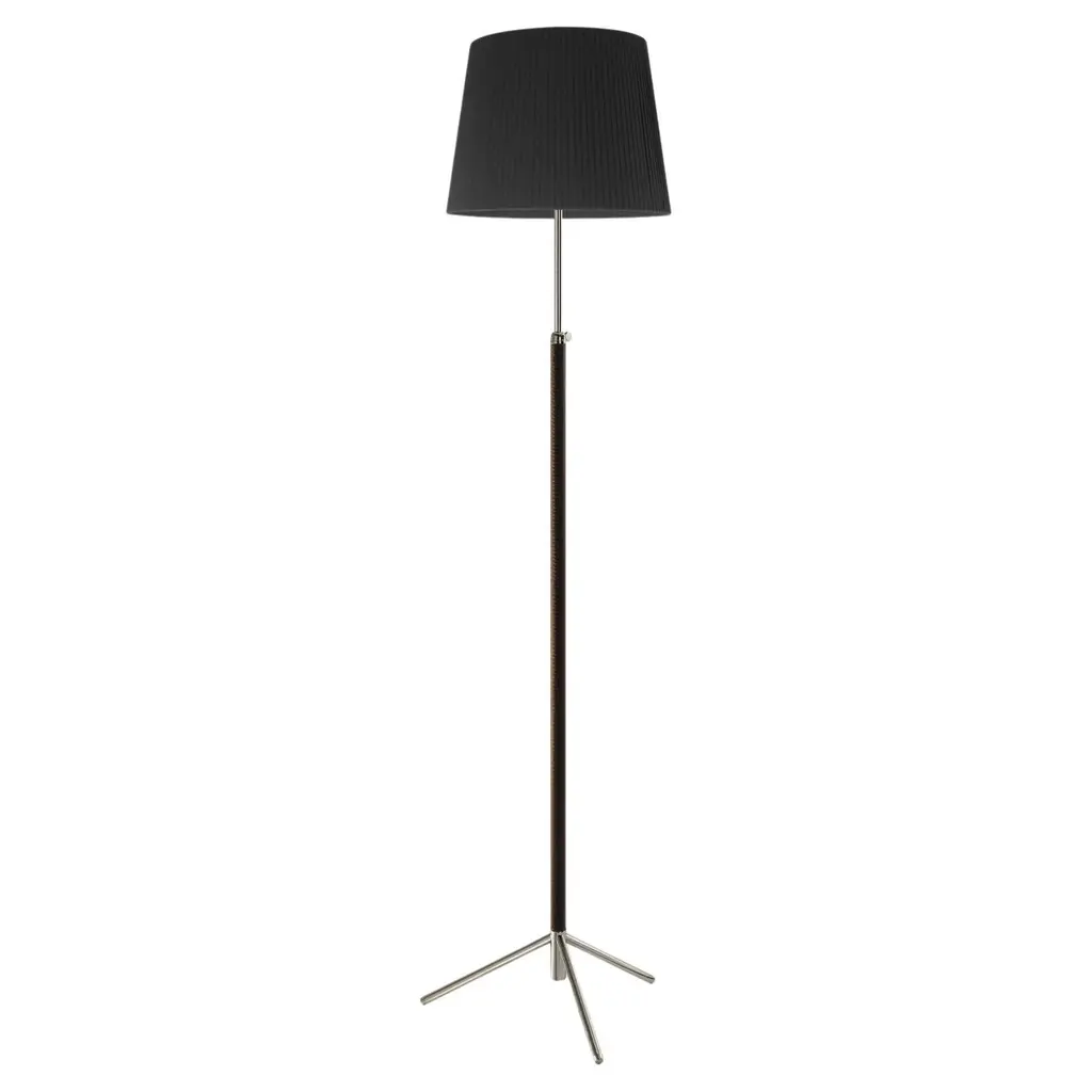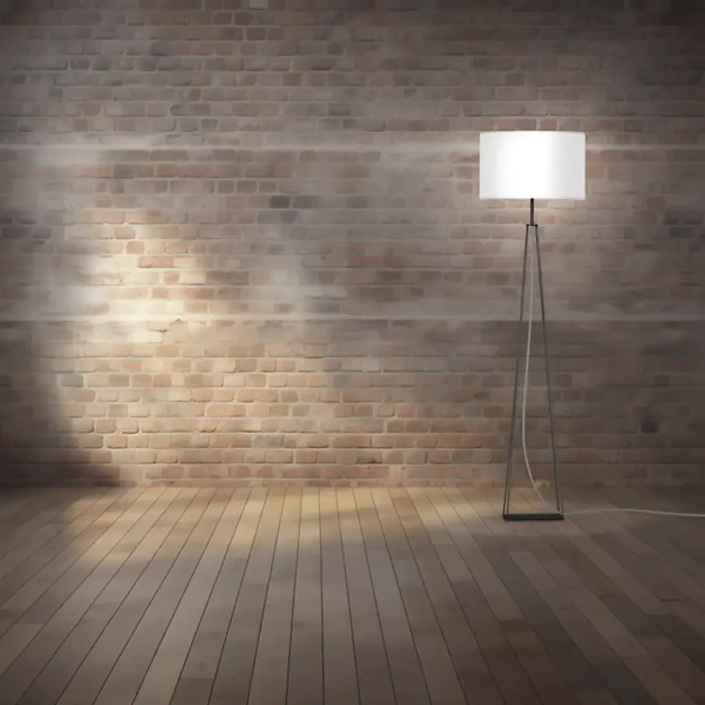 The Tower Floor Lamp from Seascape Lamps uses an unusual triangular structure to create a fixture that looks good from any angle. Built from quarter-inch steel rod and a heavy metal base, this lamp stands with absolute stability on any floor surface. The three-sided frame rises to support a simple drum shade that distributes light evenly in all directions. A mesh-covered cord runs along one edge, adding a small but intentional detail to the minimal frame. This piece works perfectly beside reading chairs, next to couches, or in corners that need additional illumination.
