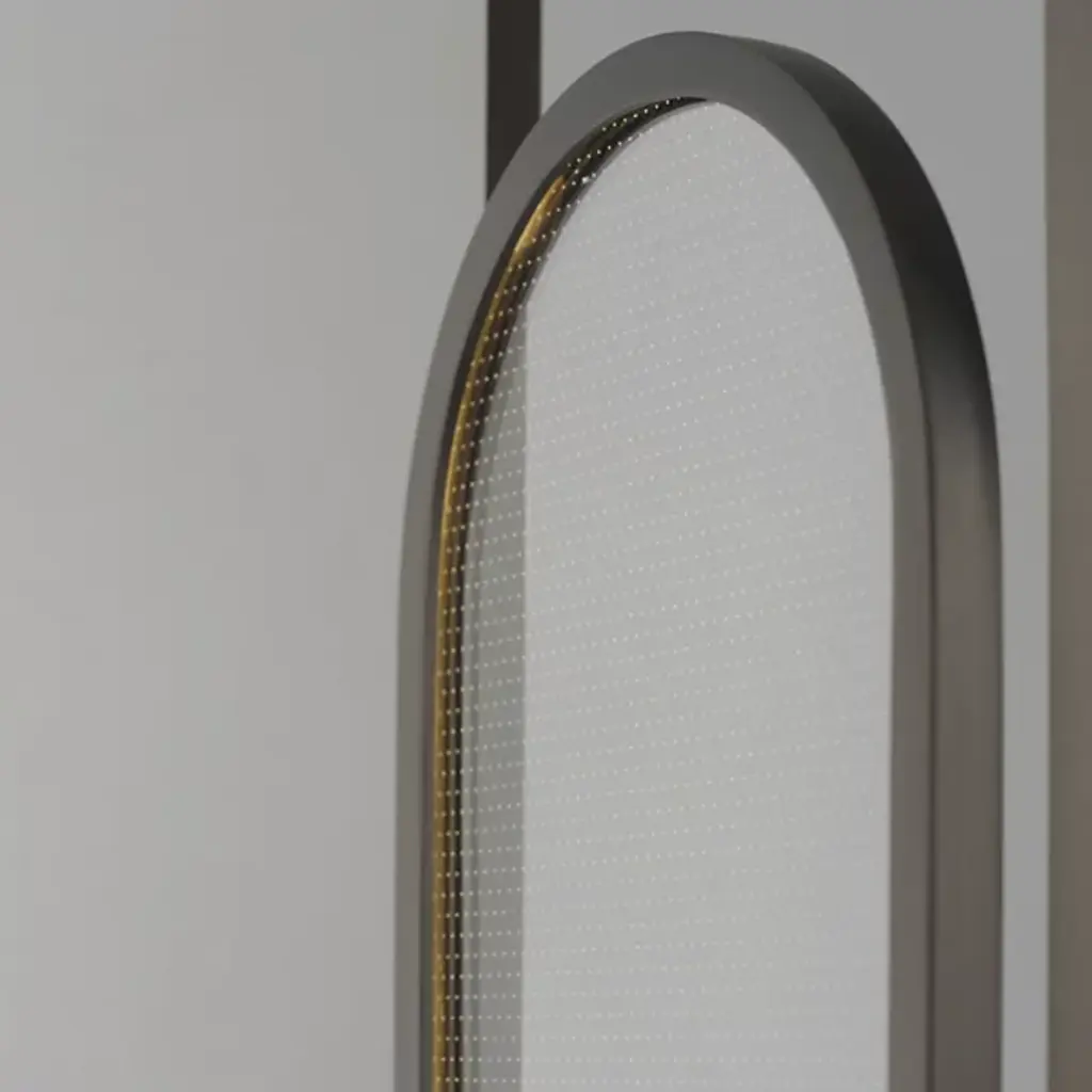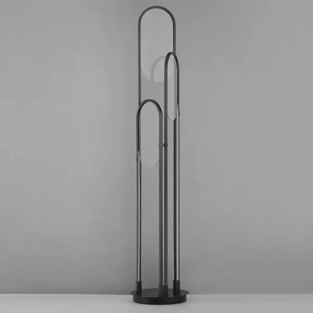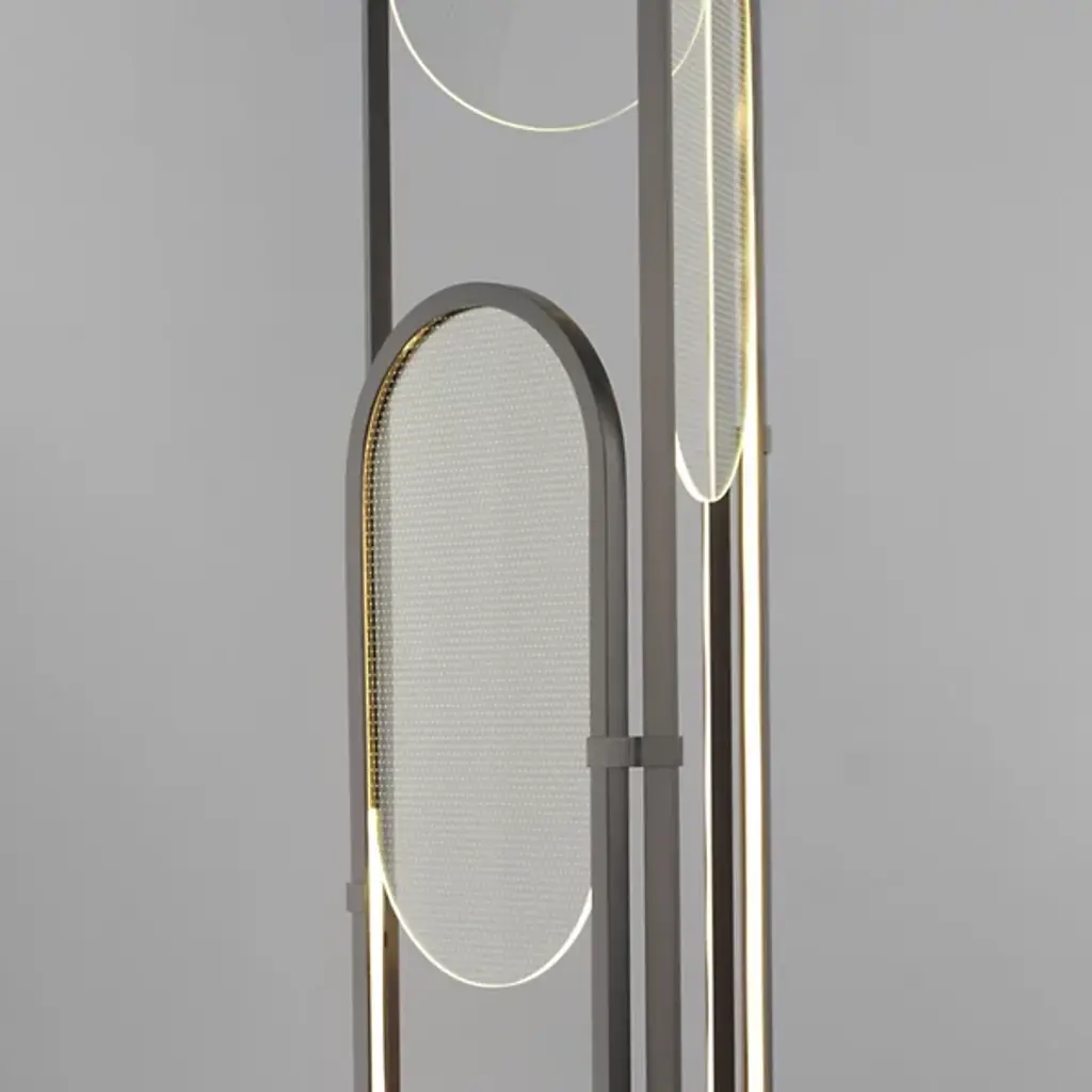 With a striking minimalist design, the Trance LED Floor Lamp from Studio M features oval frames finished in Natural Aged Brass, which elegantly illuminate floating dichroic glass panels. As light passes through these panels, subtle iridescent hues are revealed, intensifying as the layers of glass overlap, adding a vibrant and colorful element to the lamp's aesthetic. This floor lamp is made from steel and aluminum and combines sleek modernity with bold visual impact, making a captivating statement in any contemporary space.