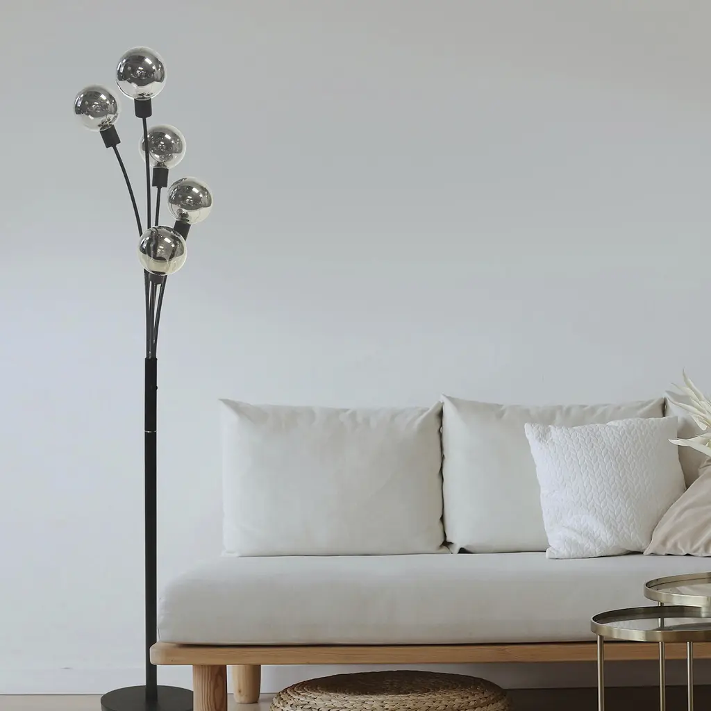 The inspiration for the Budding Branch family of lighting is obvious – the beauty of nature at its peak. Available in either floor or desk configurations, it's a bright and beautiful design with a unique silhouette. The metal frame in your choice of finish springs up from a substantial round base into five branches, each set with a glass globe light. Illumination is cast all around, and softened by your choice of glass finish. With its singular profile and nature-inspired style, Budding Branch family works with transitional and modern décor schemes in a bedroom, living room or fashionable office space.