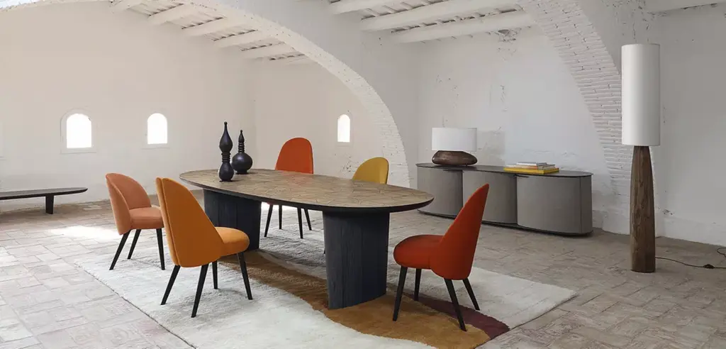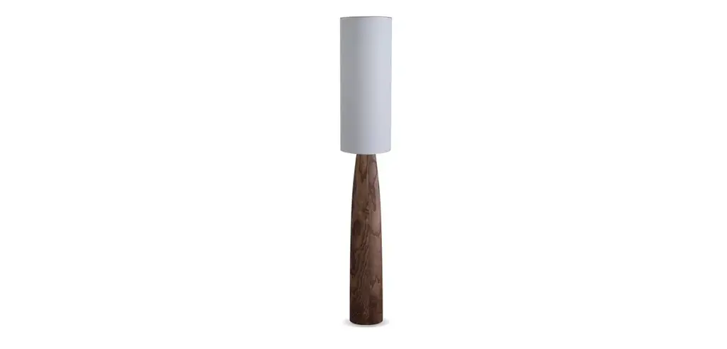 La base en frêne massif de ces luminaires, à l'irregularite assumee, evoque un galet ou un rondin flotte. L'abat-jour en coton semble flotter juste au-dessus.