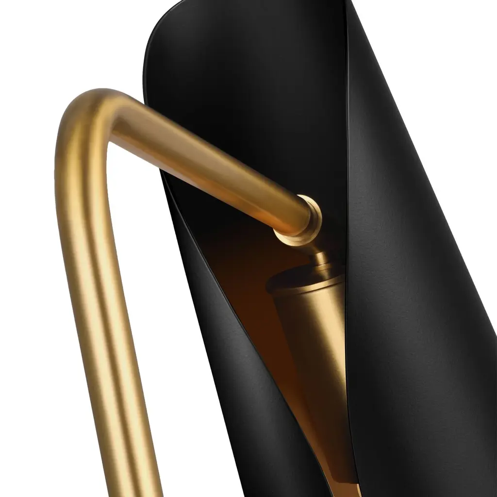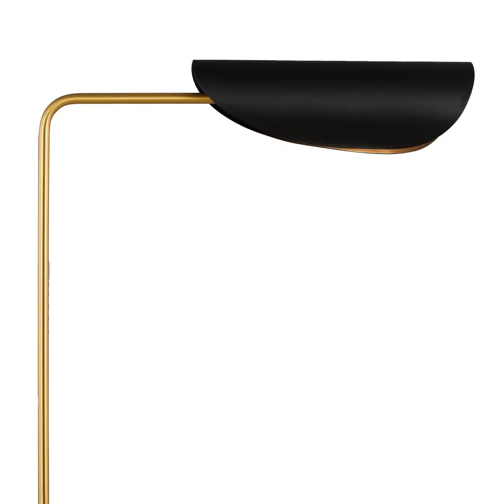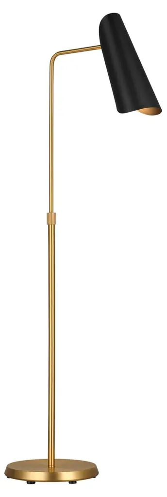 A chic marriage of form and function, this floor lamp adjusts in height from 36.5 inches to 47 inches, making it especially well suited for a reading nook or a home office. The contrast between the black or white angled shade and the burnished brass body adds contemporary glamour.