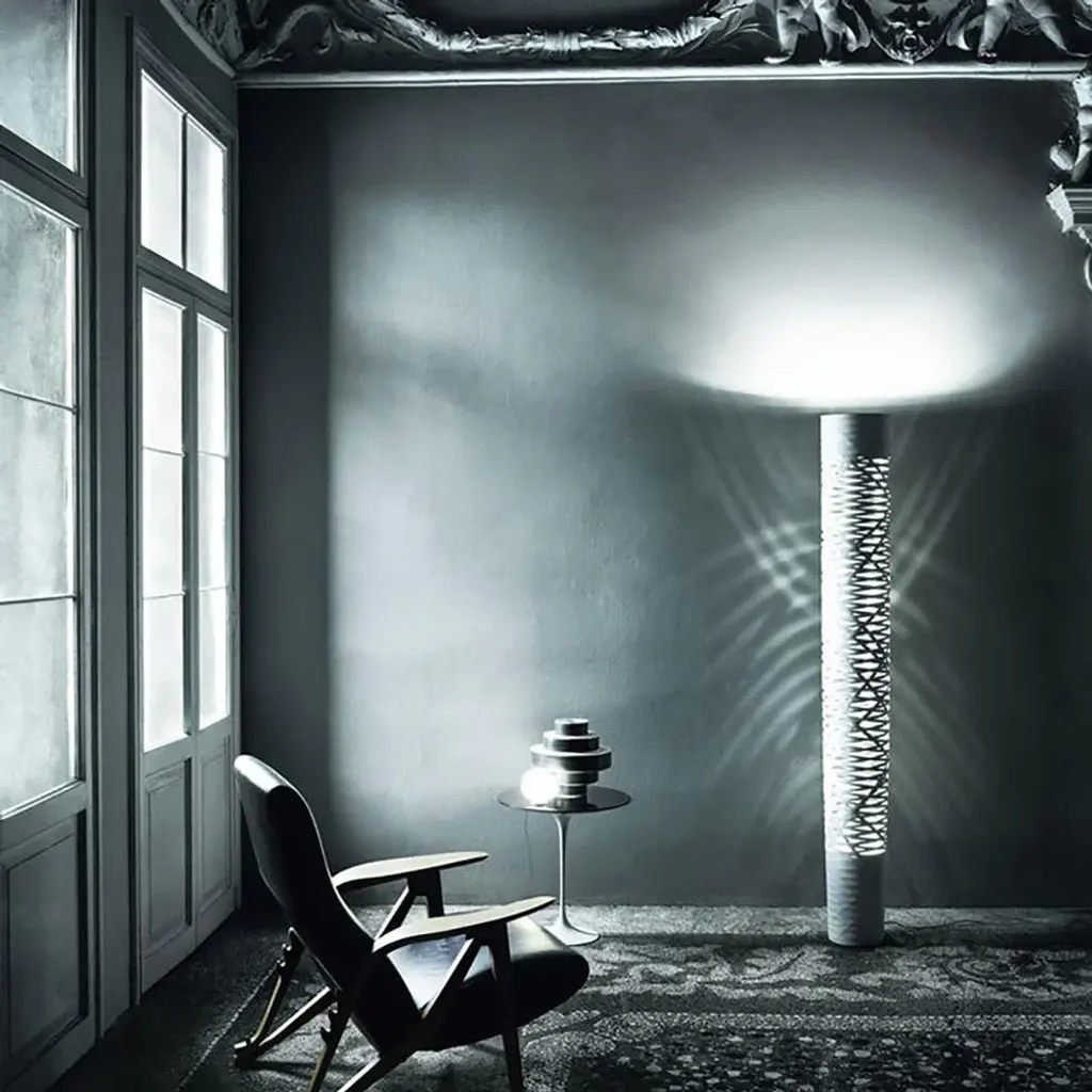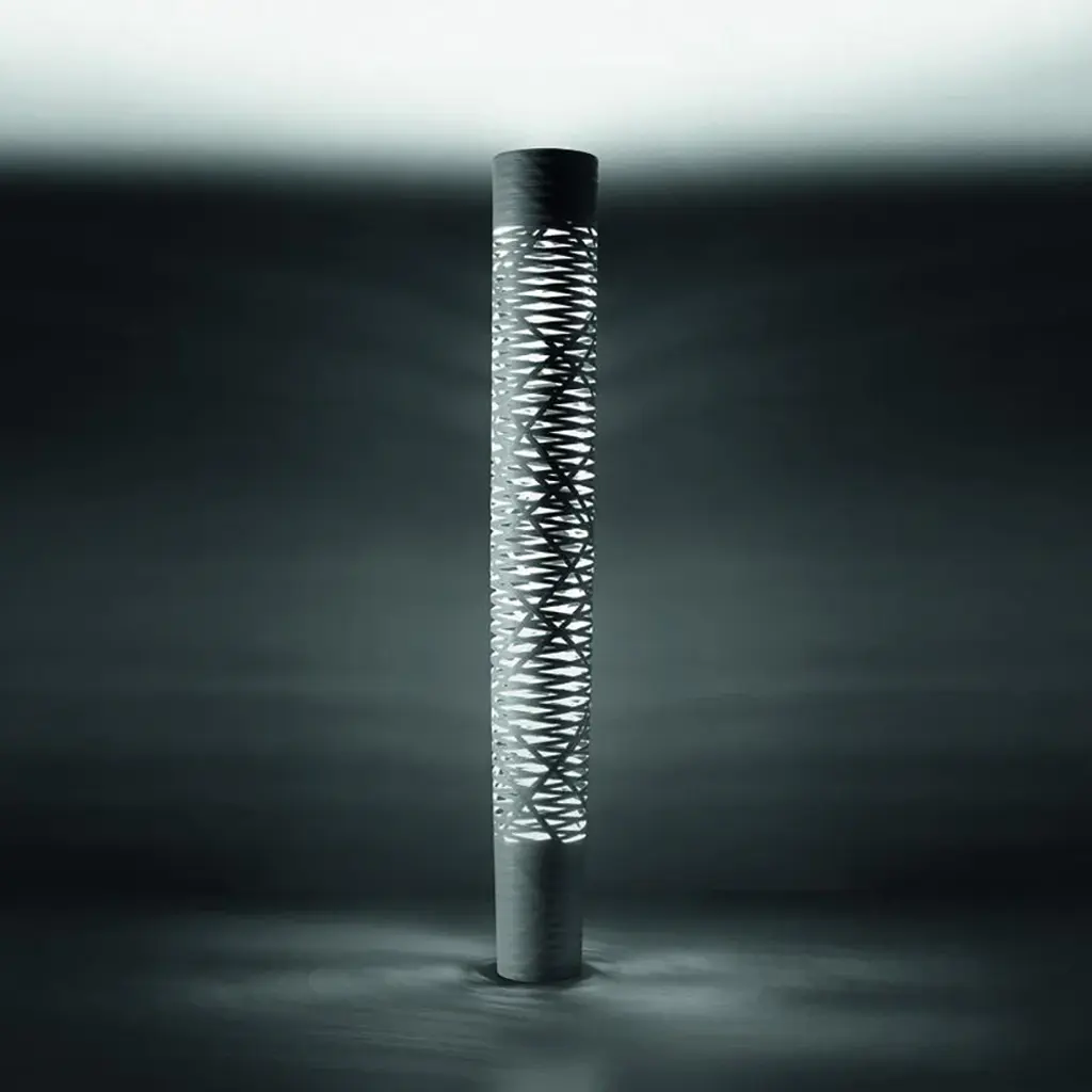 The seduction of a woman’s tress was the initial inspiration for the Tress family of lamps. This design-come-true by Foscarini was achieved through the development of a completely original technological process, involving a fiberglass and resin tape woven with orderly casualness to become the structure and aesthetics of the lamp. Tress changes personality according to its color: it is light and discrete in white, strong and decisive in black and volcanic and totemic in red, which makes the contrast between the interior and the exterior even more evident. In the floor version the weave includes the power cables and acts at the same time as the structure, decoration and screen, a never before seen interplay of full and empty spaces, light and shadow. The light spread through the lamp produces a particularly attractive effect, thanks to two separate light sources: the one in the lower position completely illuminates the interior and highlights the graphic presence of the weave, while the upper light produces an illuminated reflection towards the ceiling. Features