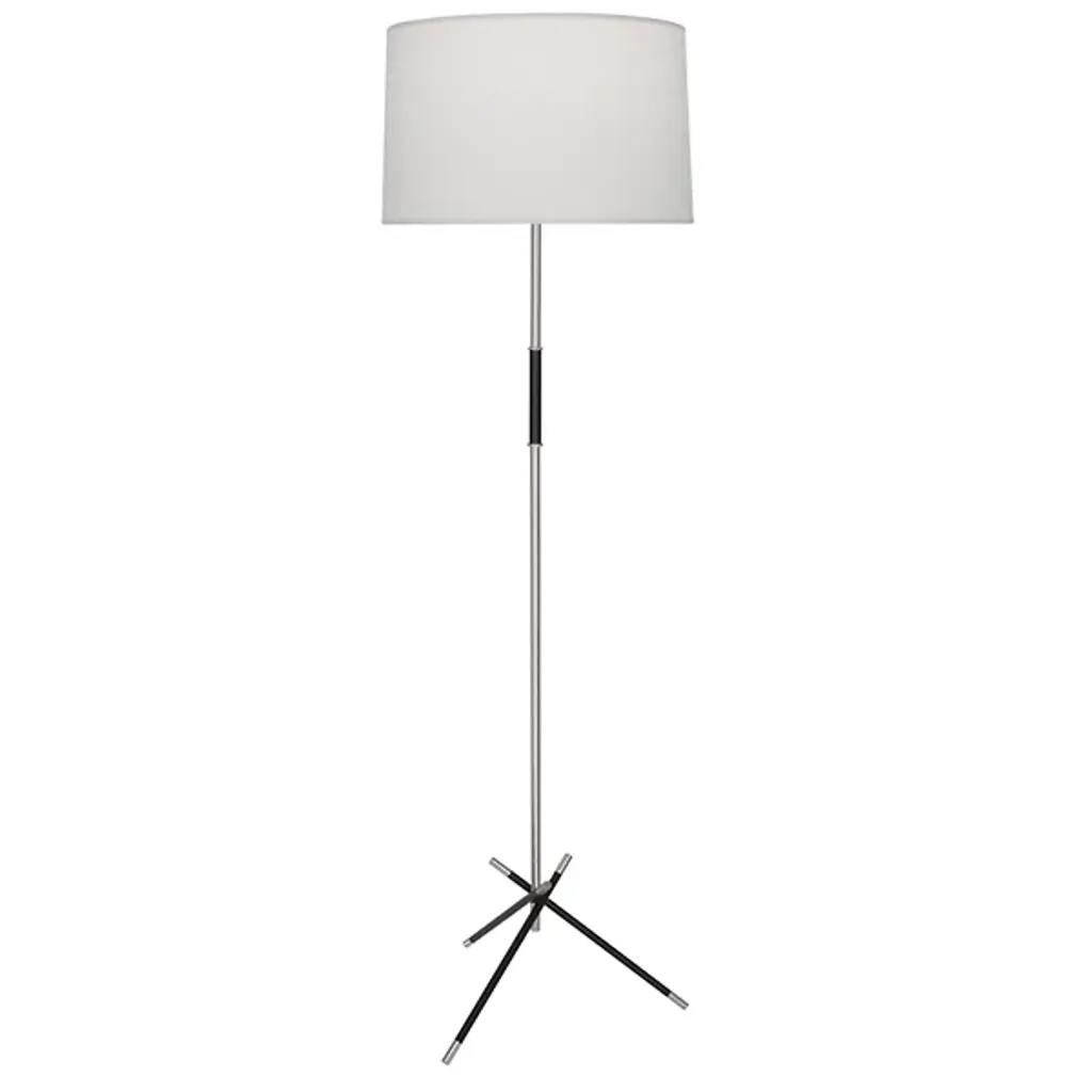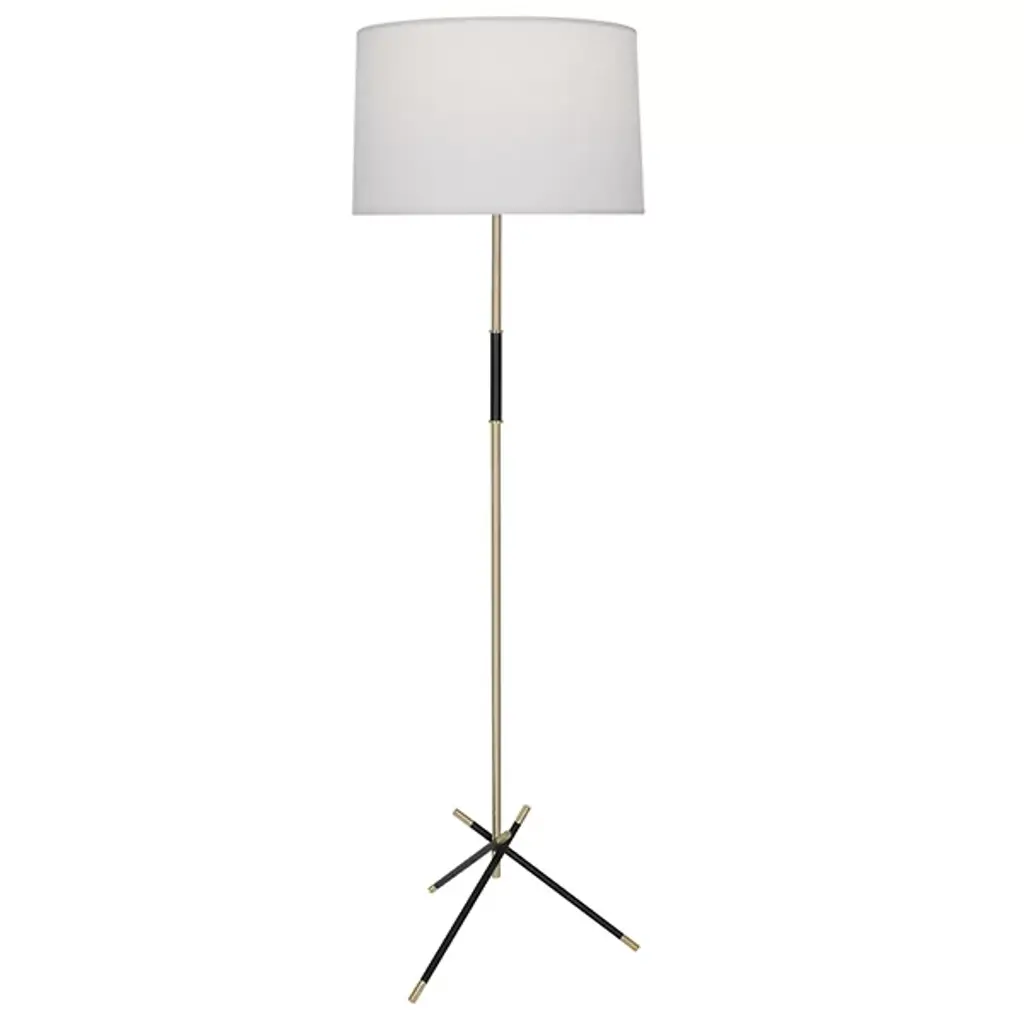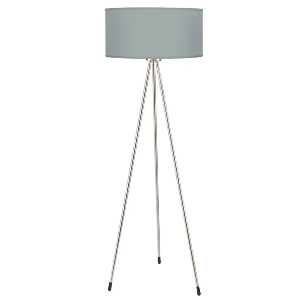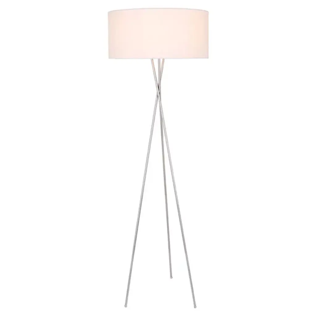A clean look for a comfortable space. The Trina Floor Lamp from Seascape Lamps finds the perfect balance between form and function as a refined tripod design. With a sense of precision anywhere you look at it, this floor lamp proves ideal in modern and contemporary spaces. A trio of metal legs forms a sturdy base with a slim and sleek visual. The pointy silhouette of the legs guides the eyes upward to the elegant shade. The shade suggests the classics in its drum shape and fabric construction. When turned on, light filters through the shade and pushes out its openings to create a soft, enveloping glow.