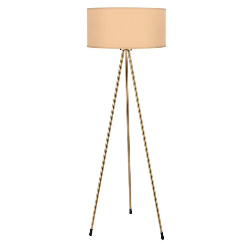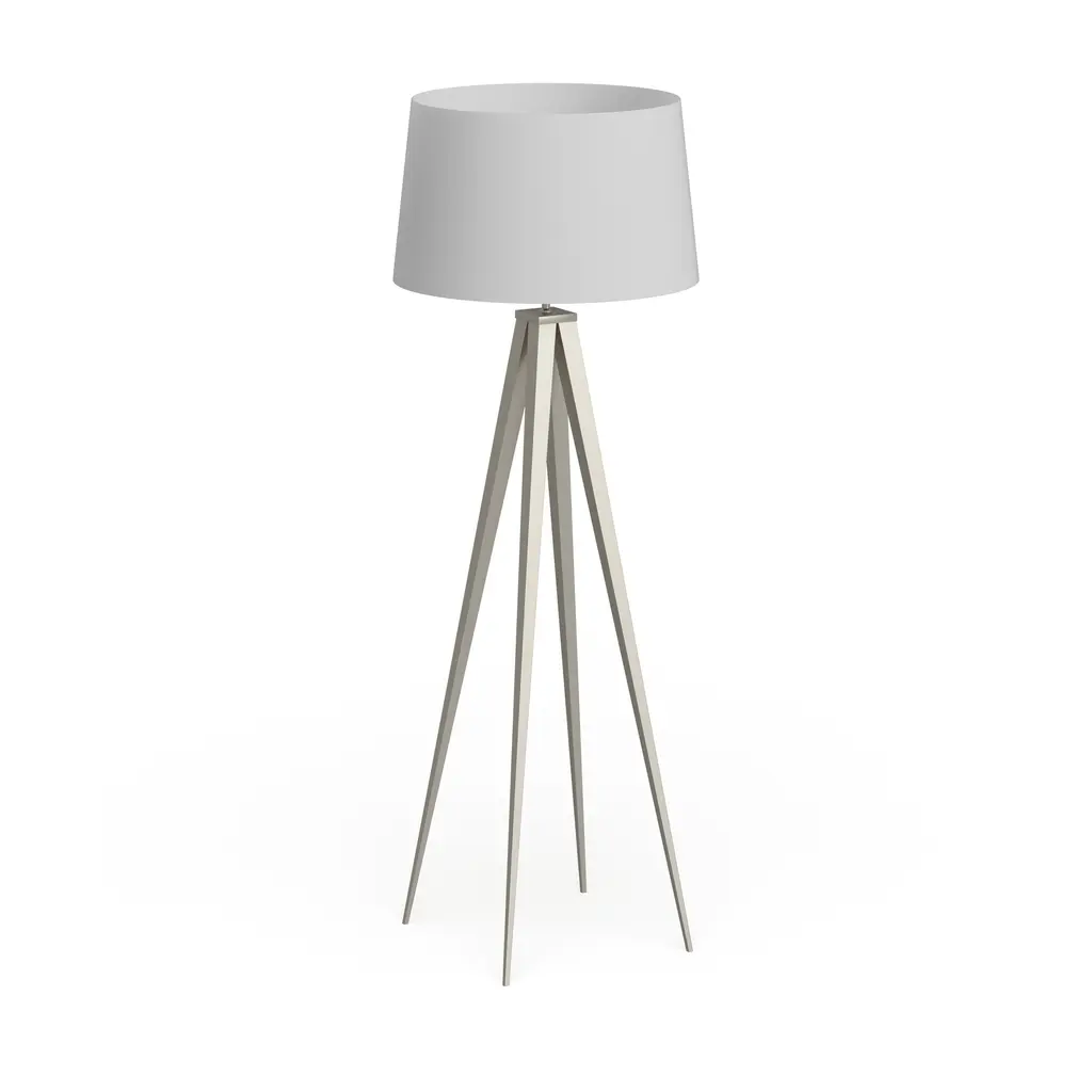 A clean look for a comfortable space. The Trina Floor Lamp from Seascape Lamps finds the perfect balance between form and function as a refined tripod design. With a sense of precision anywhere you look at it, this floor lamp proves ideal in modern and contemporary spaces. A trio of metal legs forms a sturdy base with a slim and sleek visual. The pointy silhouette of the legs guides the eyes upward to the elegant shade. The shade suggests the classics in its drum shape and fabric construction. When turned on, light filters through the shade and pushes out its openings to create a soft, enveloping glow.