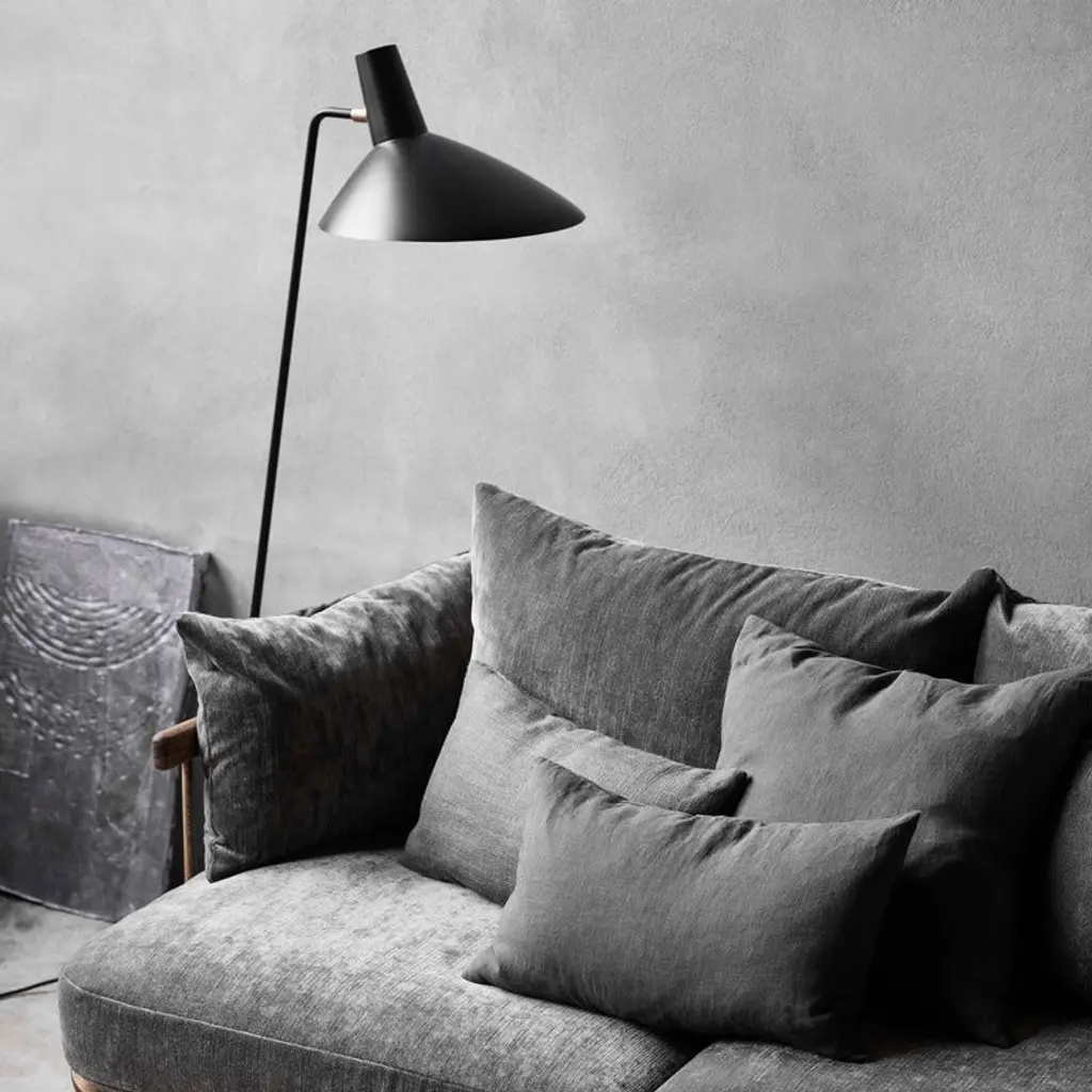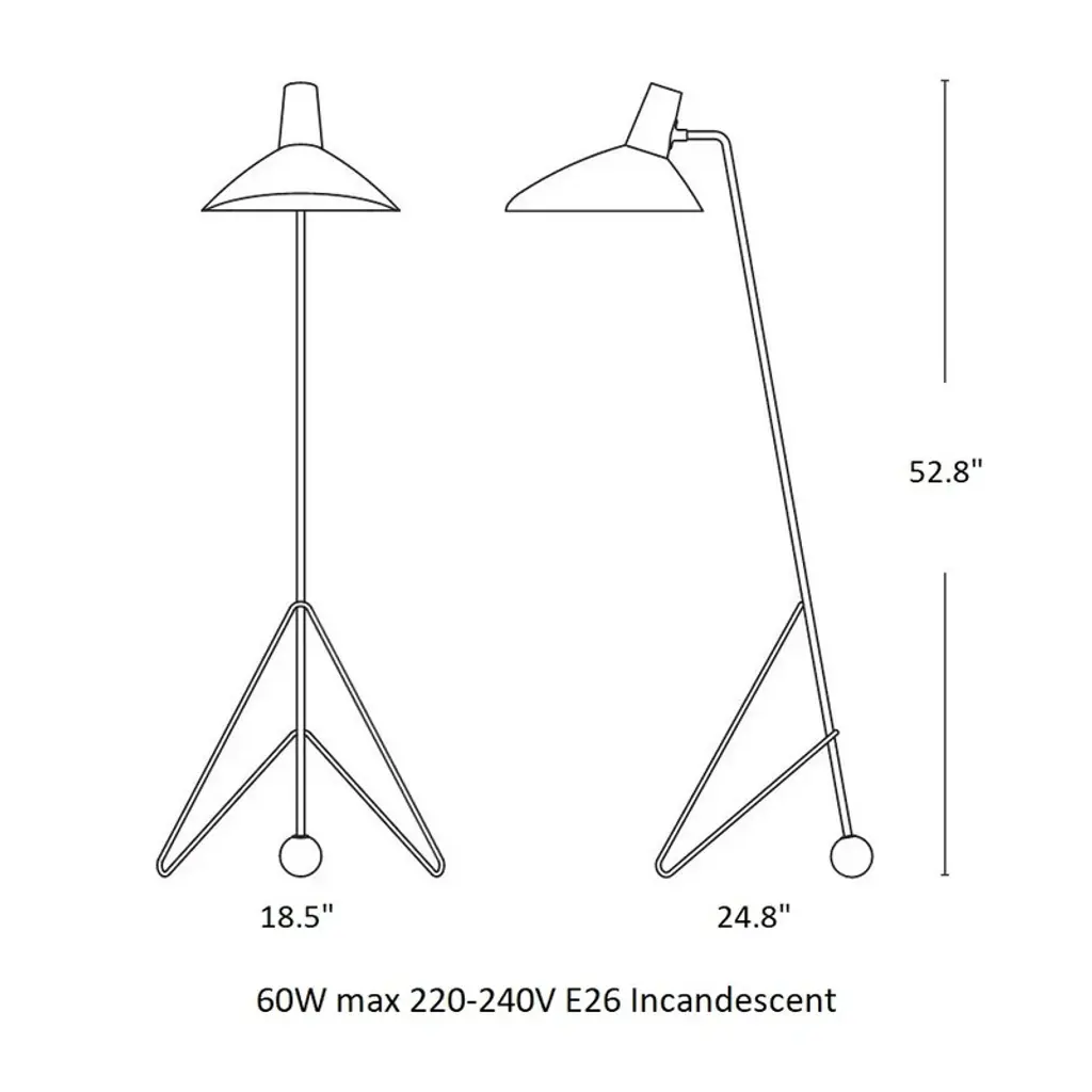 Tripod from 1953 reflects the clean minimalism of Old Masters Hvidt & Mølgaard. A floor lamp built from lacquered steel with brass details, it strikes a delicate balance between the stark simplicity of its design and the softness injected by the curved edges of its base. Although it was designed in 1953, this is the first time it’s in production. Features