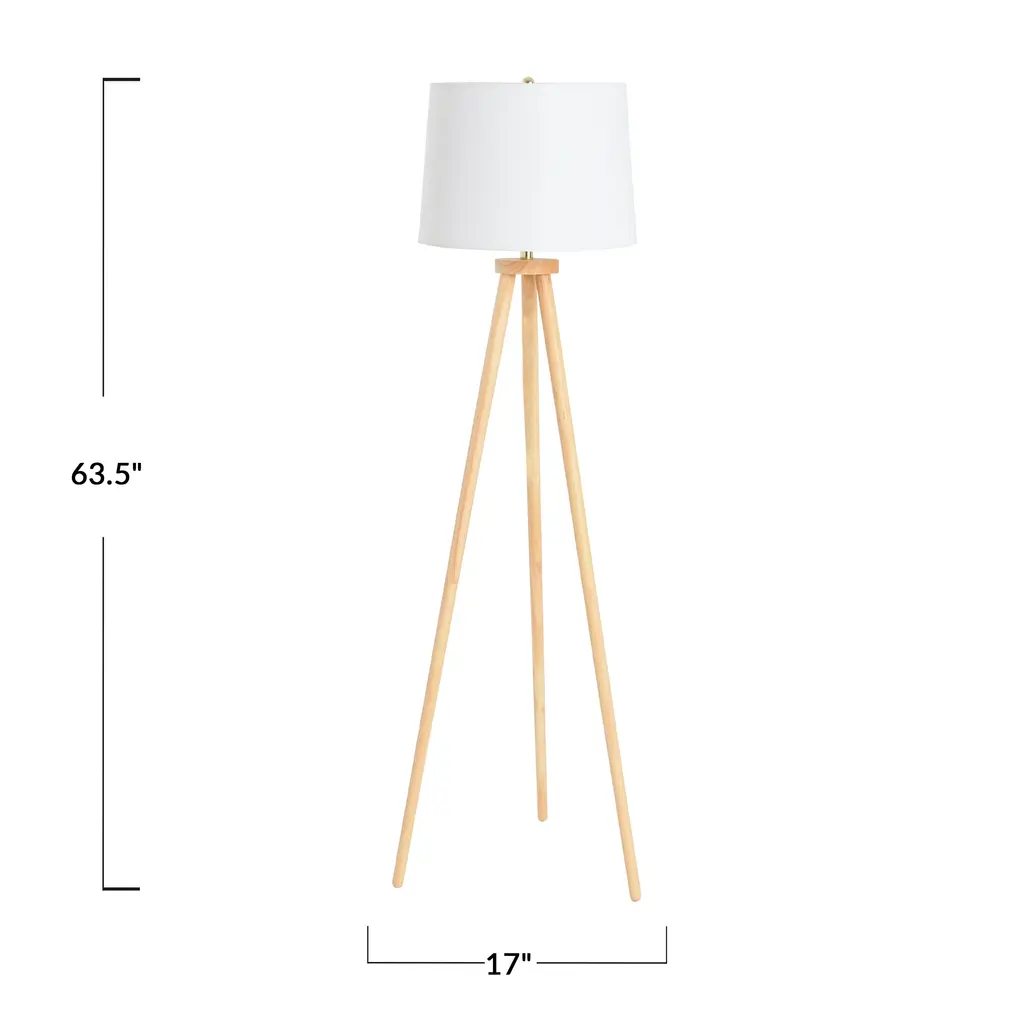 Tripod Wood Floor Lamp With Linen Shade - Natural And Cream