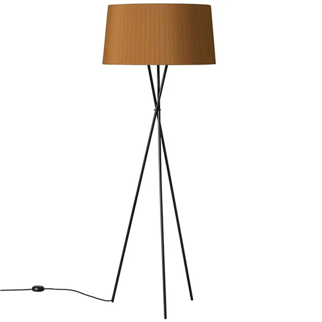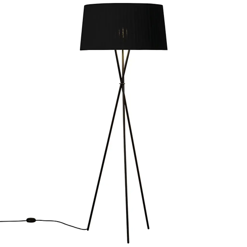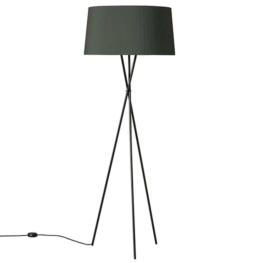 The Santa & Cole Tripode G5 Floor Lamp, is a contemporary beauty dressed in traditional clothes. As classic as the black cocktail dress, the Tripode G5 Floor Lamp, with the large, drum-shaped, cotton-ribbon lampshade, is no shrinking violet. Its presence can define a lost corner and give substance to interior decor. Designed in 1997.