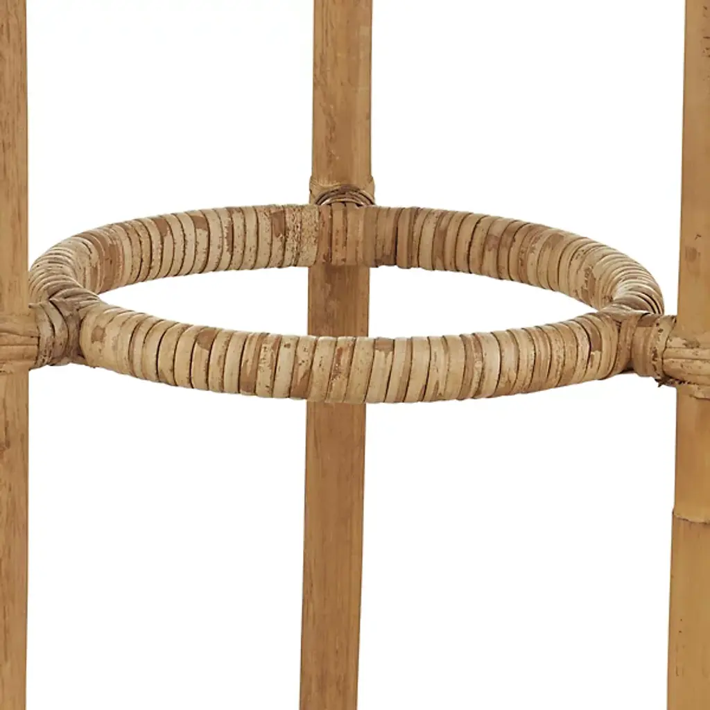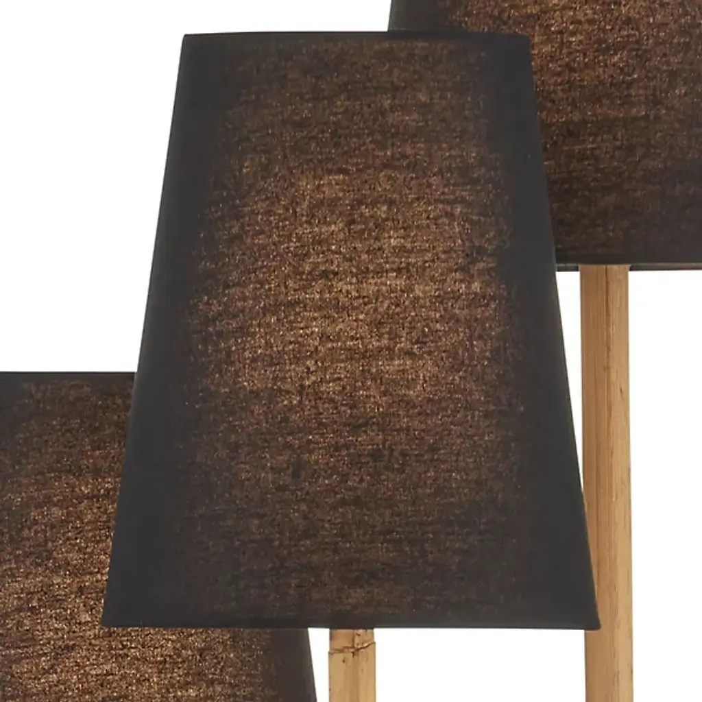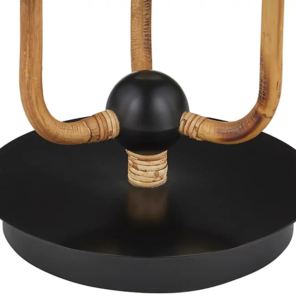 The Triptych Floor Lamp from Currey & Company uses a wrought iron and rattan construction to match the transitional shape with bohemian notes. The lamp features a natural linen shade supported by three rattan-covered stems that ascend from a satin black base. This rope-wrapped design, with a convenient foot switch for easy operation, makes it a stylish and practical addition to living spaces. The cascading, stepped effect of the varying stem lengths and the black and neutral tones create a visual contrast amid a sculptural spectacle.