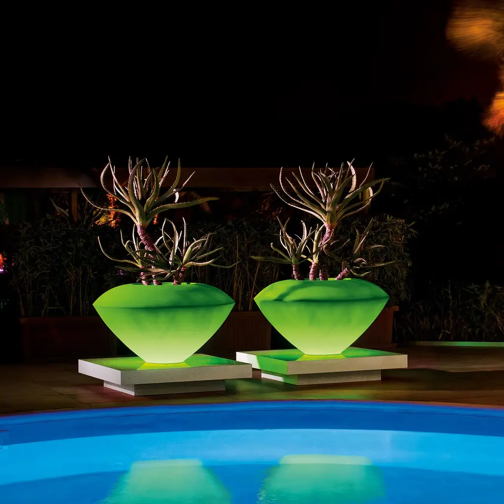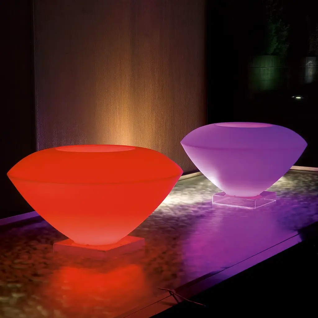 An exquisite piece of functional decor suitable for both indoor or outdoor use, this floor lamp is crafted of LDPE (low-density polyethylene). It is part of a series of PLT (plug-in lamp with triple compact fluorescent turns, or 3U) lamps.