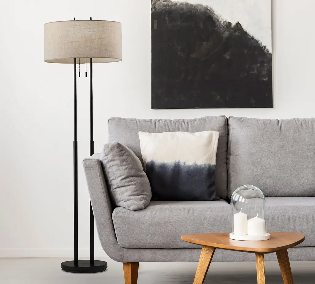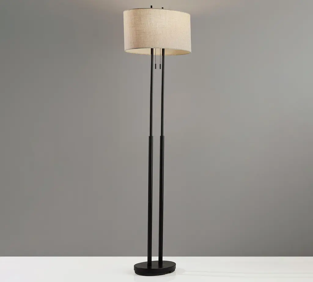 Light up the room with this metal floor lamp. It features easy-to-access pull chains that allow you to control the light, and the taupe-toned shade provides a neutral canvas that works with any decor style.