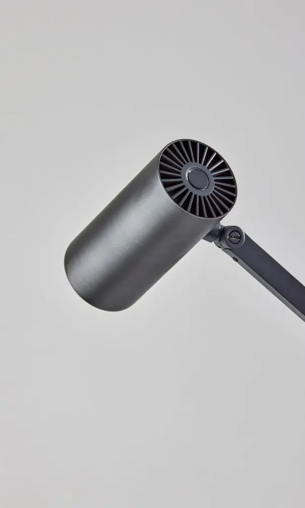 A flexible task light, the Crane LED Floor lamp has a long arm that is easy to adjust in height and rotation. A bronze finish, accented with a black fabric cord communicates a polished, contemporary look. The Crane makes use of its black cloth covered cord and a special spring hidden in the base to balance its arm at any angle you choose to pose it. A small but powerful cylinder shade holds an energy-efficient 7 Watt LED lthat is replaceable. The simple 4-way touch dimmer switch is located at the end of the shade.At 48" tall and the lamp''s compact footprint makes an ideal choice for room corners or beside furniture.Clean angles and lines present a modern aesthetic.Bronze FinishBlack Fabric Covered CordComplete your décor with the coordinating Crane Task Floor Lamp7W Replaceable LED