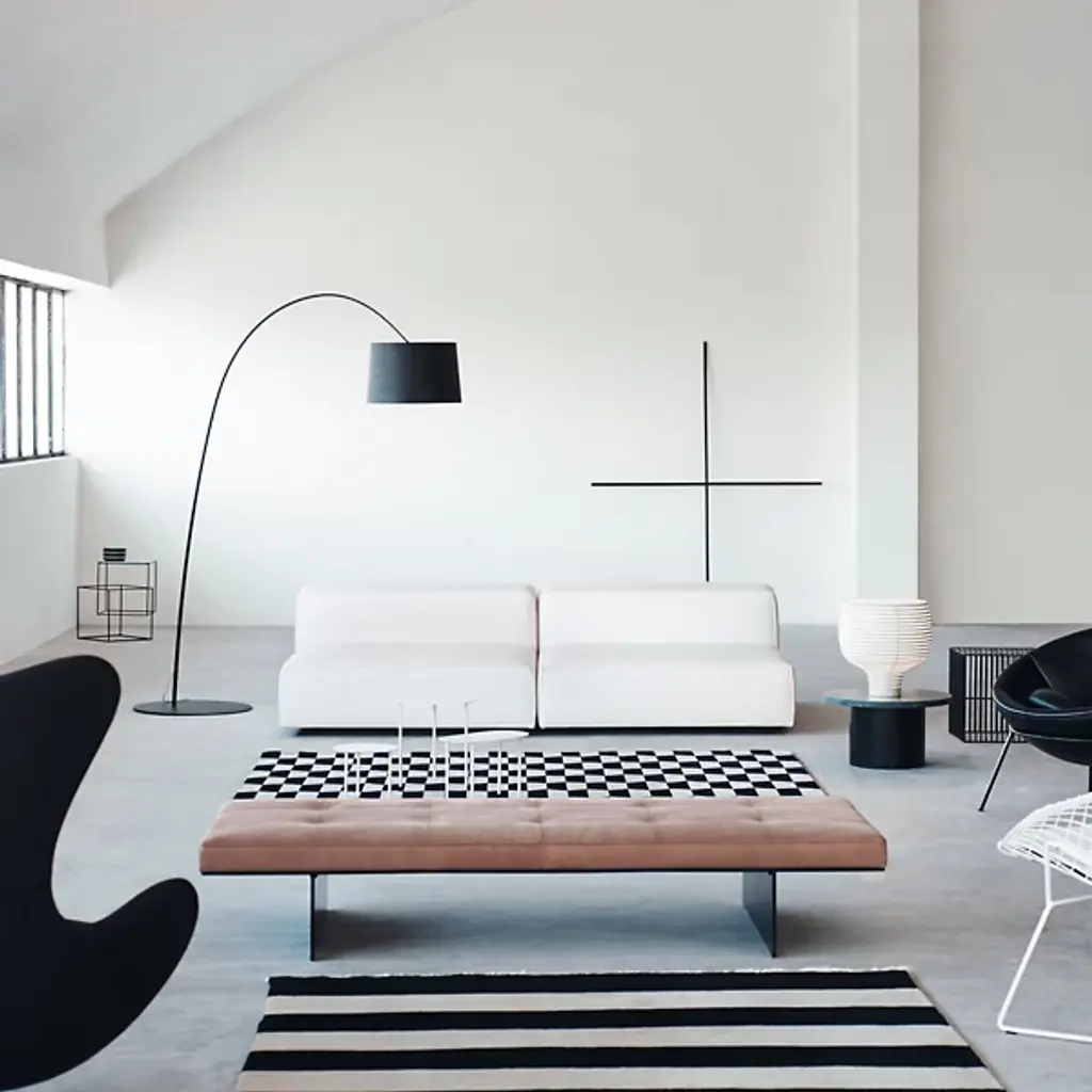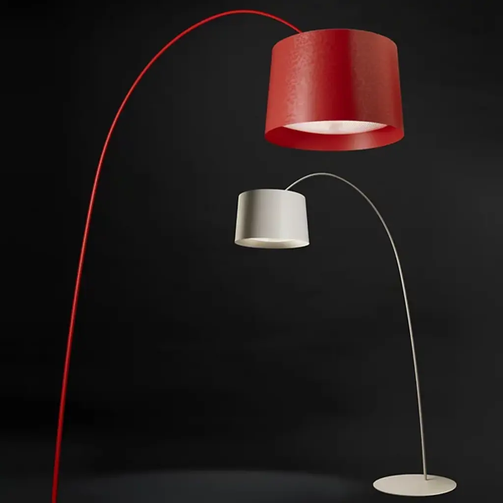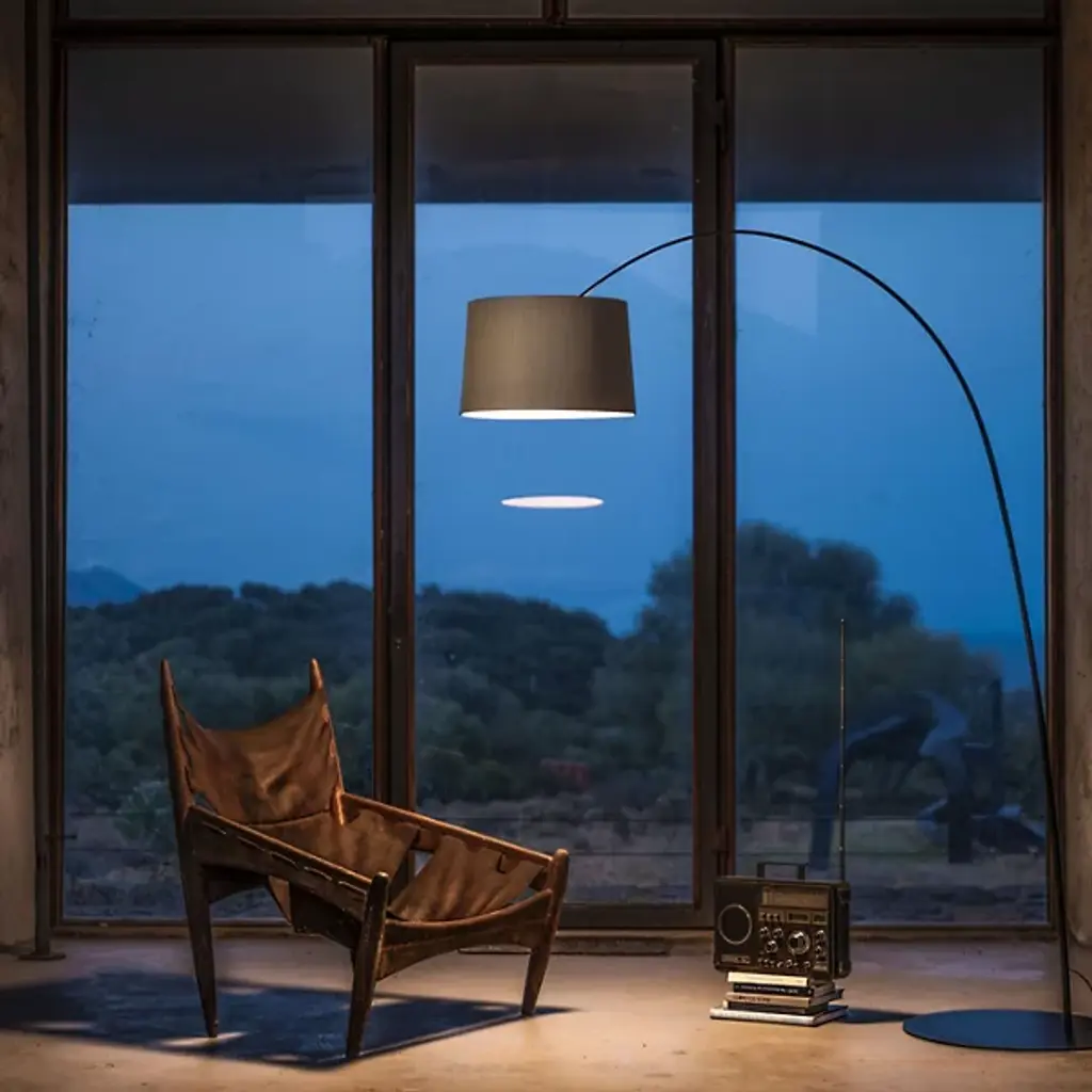 The Foscarini Twiggy Arc Floor Lamp is a graceful statement of structural elasticity and material discovery. Made from a fiberglass composite material similar to fishing rods, the stem is able to withstand heavy tension and bounce back to the original form without permanently stretching. By adding and removing the provided counterweights to the drum shade, the height of the arc can be adjusted to preference. The playful design casts a comforting light below and above the fixture through prismatic diffusers, completely shielding the light source for a pleasing lighting experience.